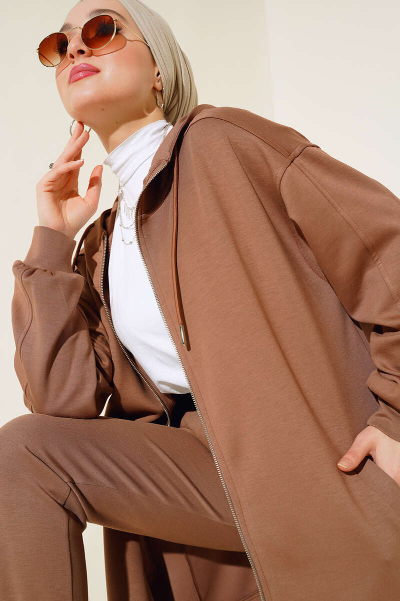Yeni sezon ikili takım modelimiz sizlerle beraber. Tuniğimizin önü fermuarlıdır. Kapüşonludur. İki adet cebi bulunmaktadır. Pantolonumuzun beli lastiklidir. İki adet cebi bulunmaktadır. Paçası lastiklidir.