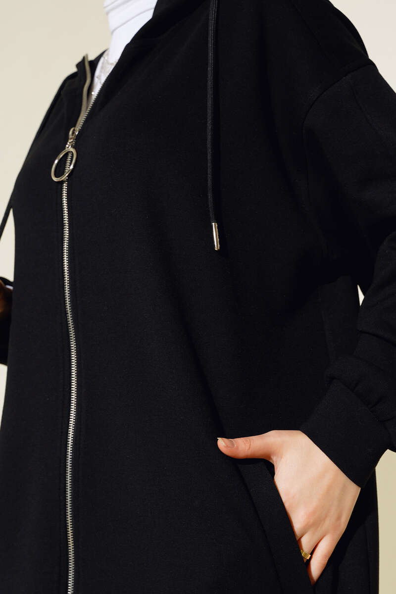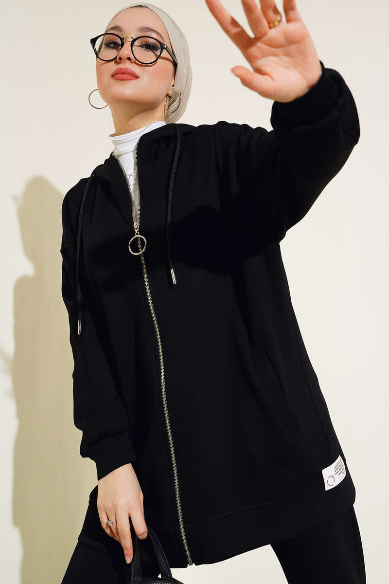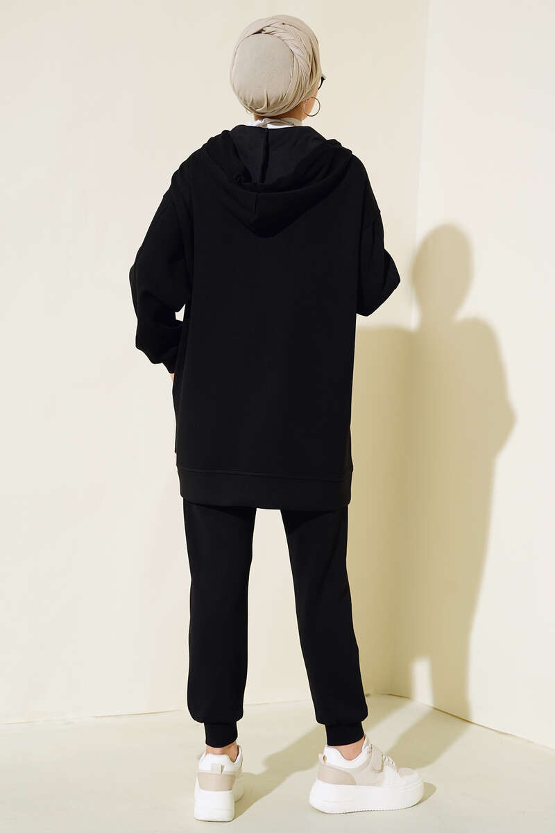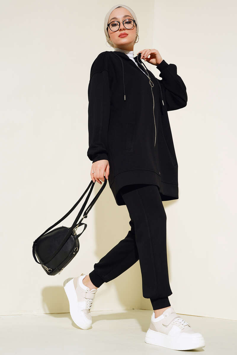 Paça Lastikli Fermuarlı İkili Takım Siyah