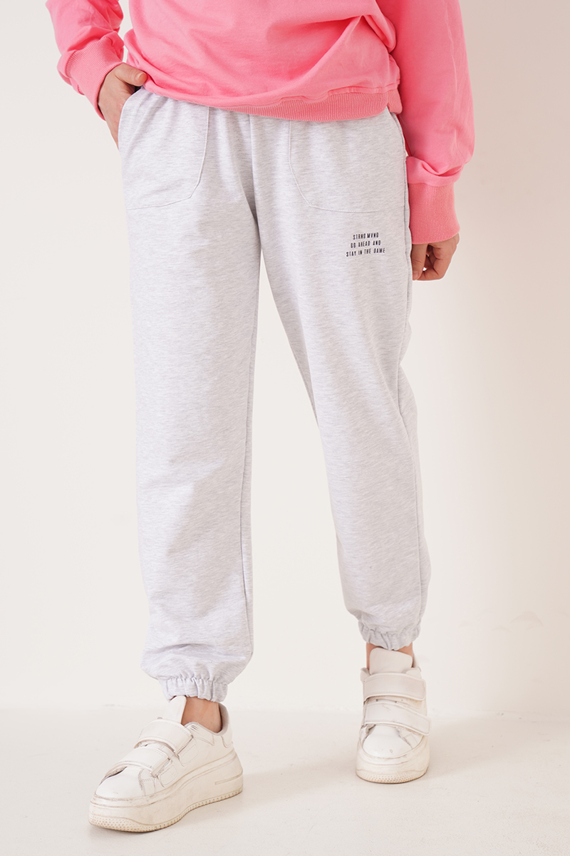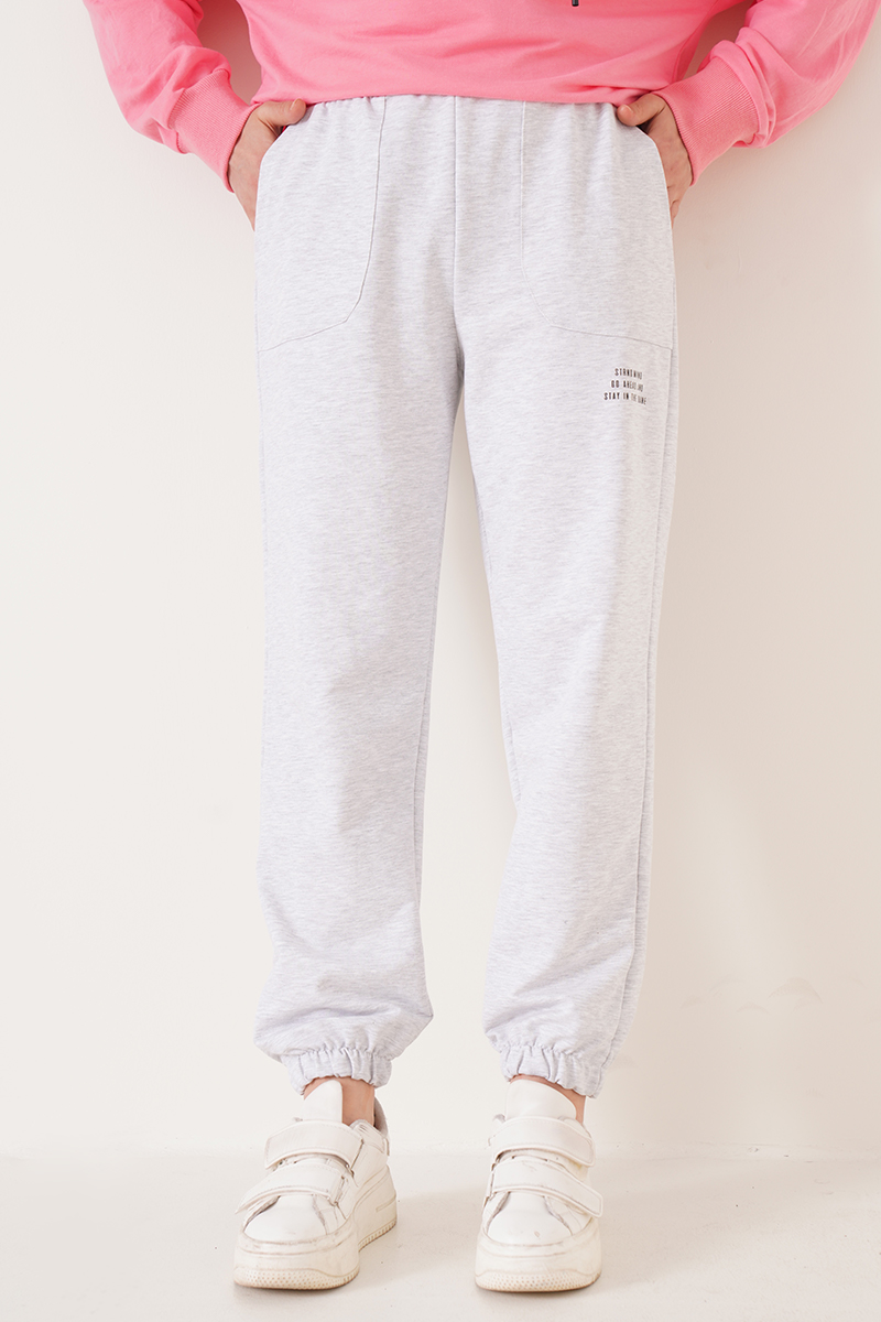 Gri eşofman altı yeni sezon modeldir. Beli ve paçaları lastiklidir. Çift ceplidir. Fermuarsız ve düğmesizdir. Yazı detaylıdır. Geniş renk alternatifiyle her zevke hitap etmektedir.