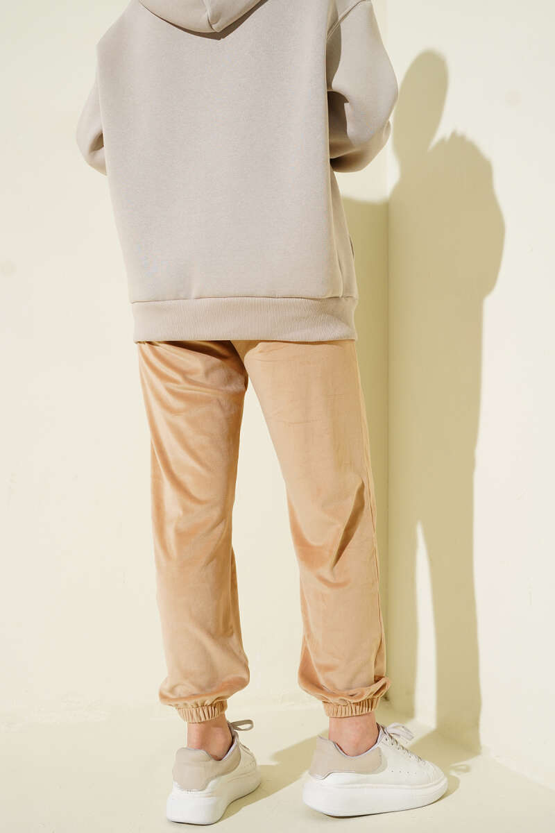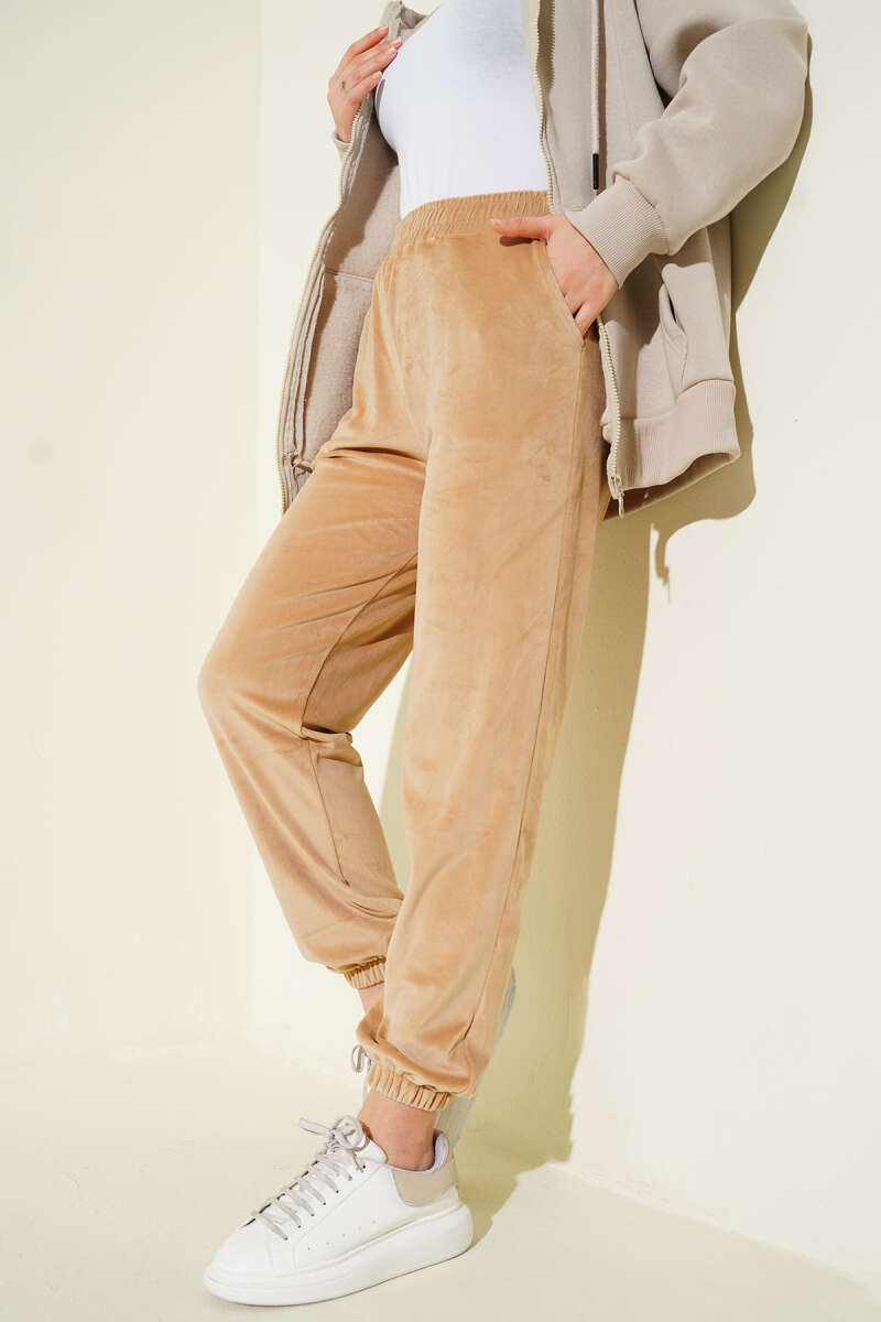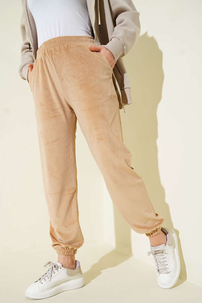 Paça Lastikli Kadife Jogger Pantolon Gül Kurusu