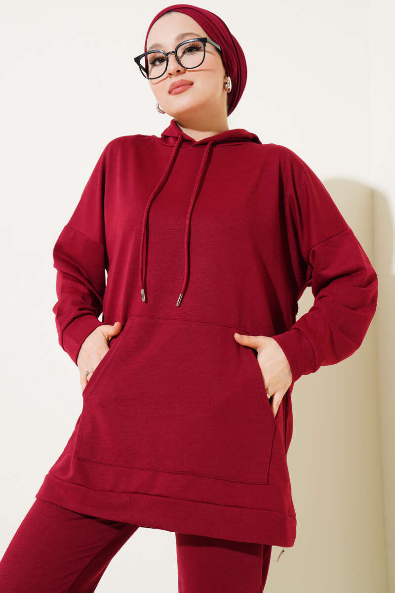 Asimetrik Kesim Bisiklet Yaka İkili Takım Bordo