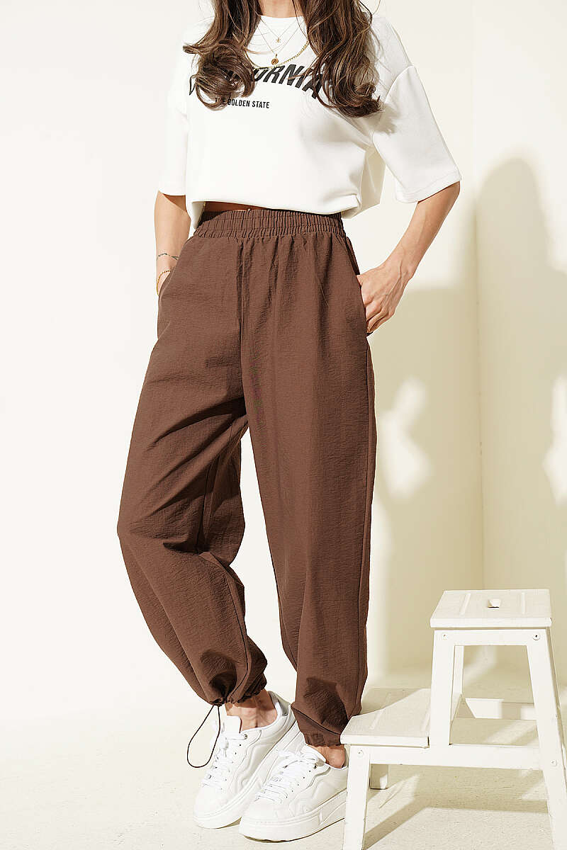 Paça Lastikli Paraşüt Jogger Pantolon Kahve