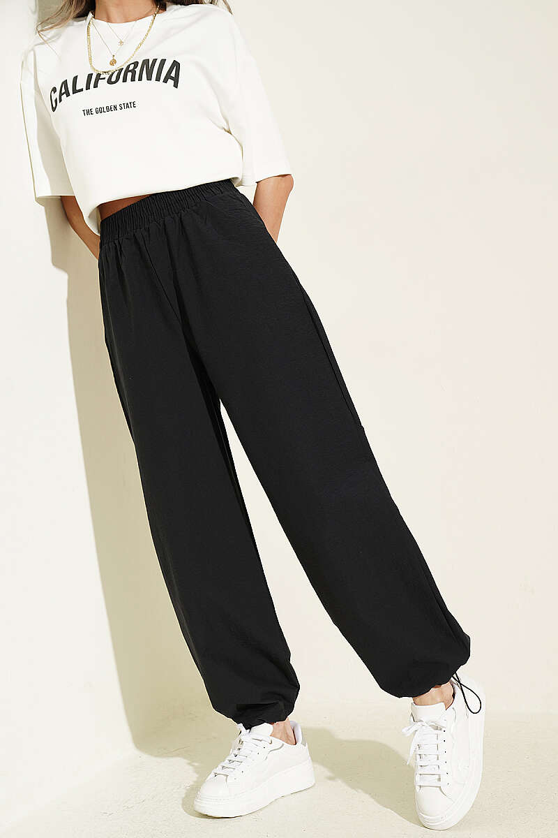 Paça Lastikli Paraşüt Jogger Pantolon Siyah
