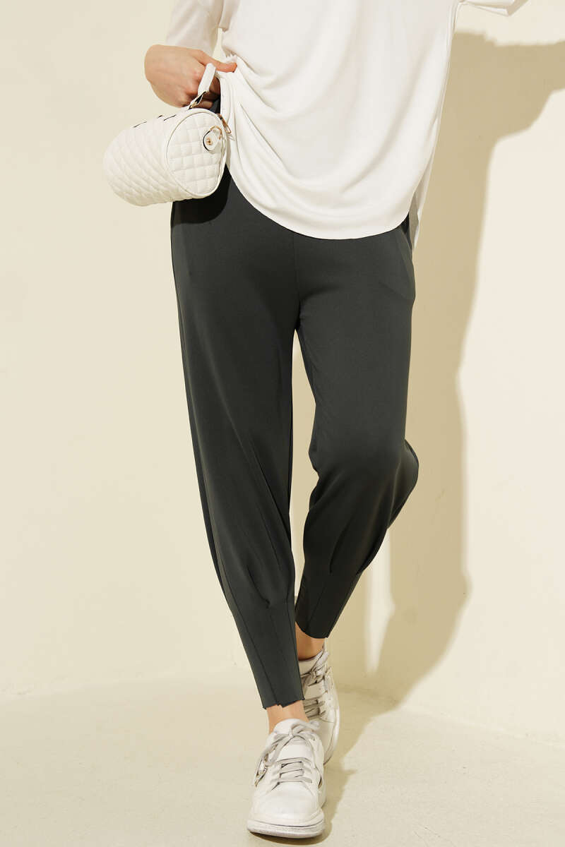 Paça Pensli Bel Lastikli Scuba Pantolon Füme