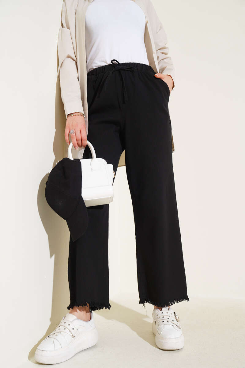 Beli Lastikli Dar Paça Pantolon Siyah