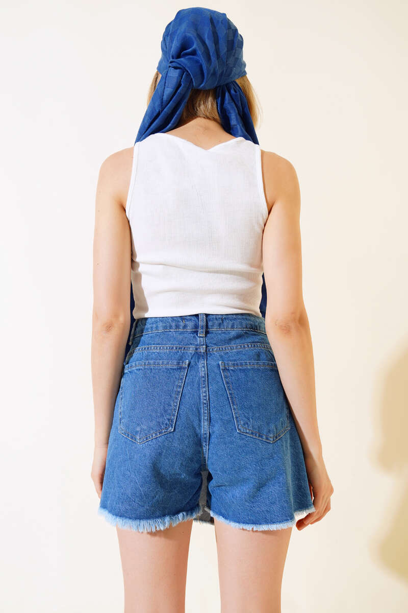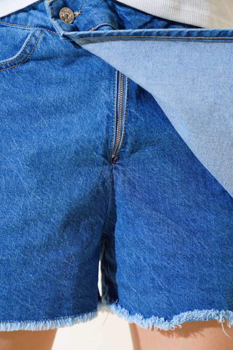 Yeni sezon şort eteğimiz sizlerle beraber. Şortumuzun paçası püsküllüdür. Beli düğmeli ve fermuarlıdır. Belinde dört adet kemer köprüsü vardır. Şort eteğimizin iki önde iki arkada cebi mevcuttur.