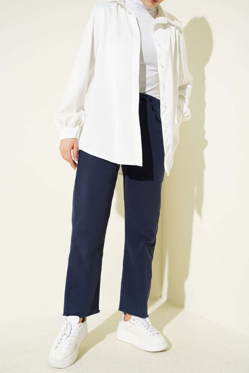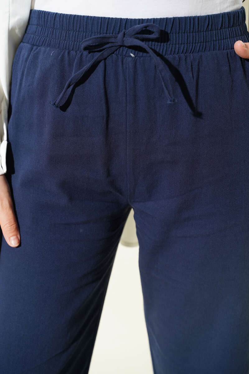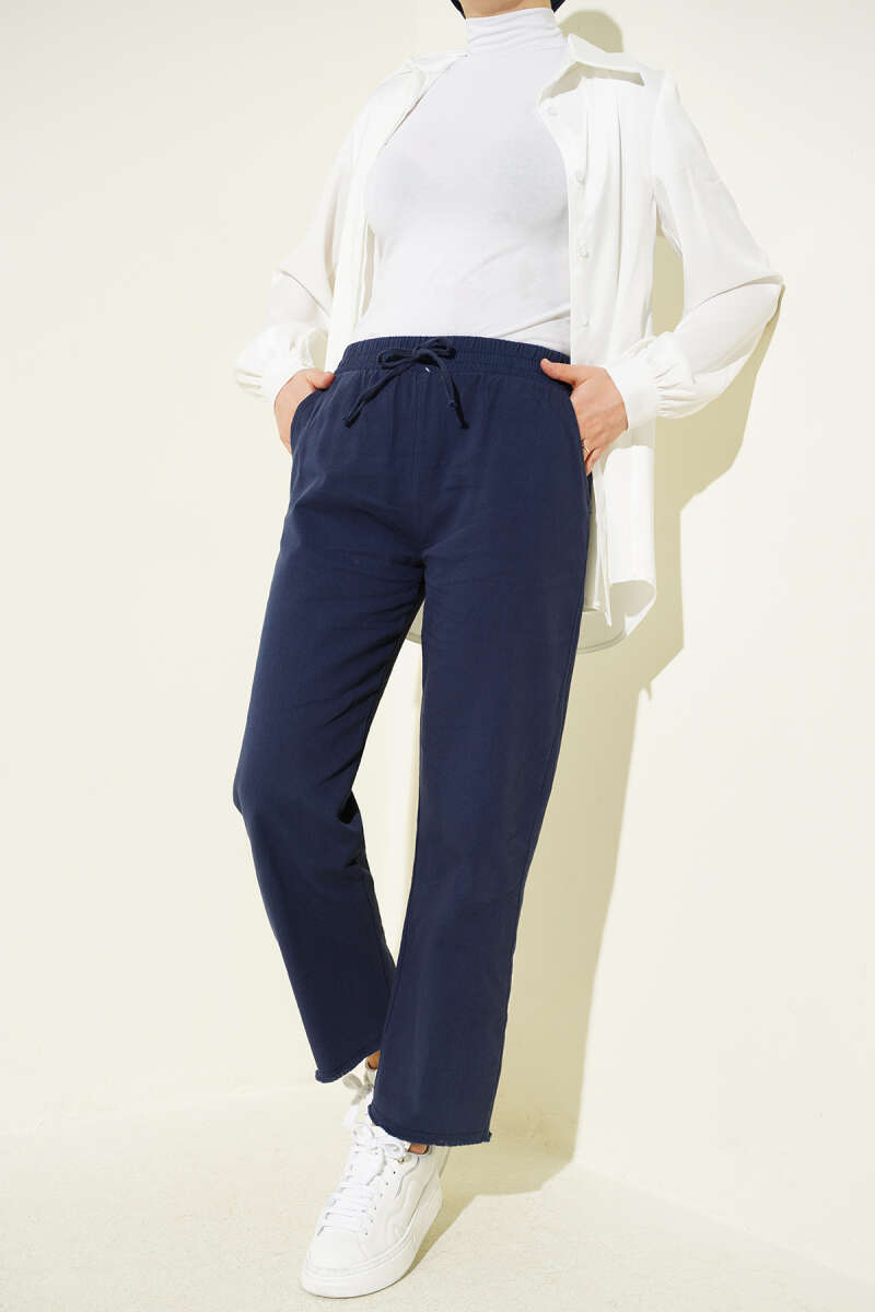 Paça Püsküllü Lastikli Gabardin Pantolon Lacivert