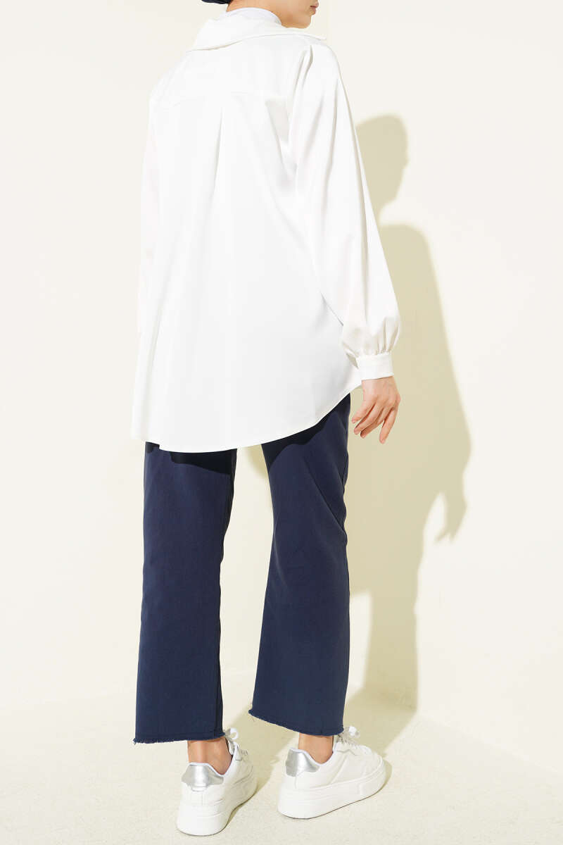 Kare Yaka Uzun Kol Sandy Crop Beyaz
