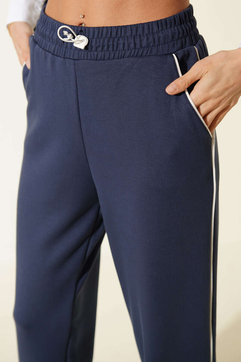 Bel Lastikli Çift Düğmeli Kot Pantolon Mavi