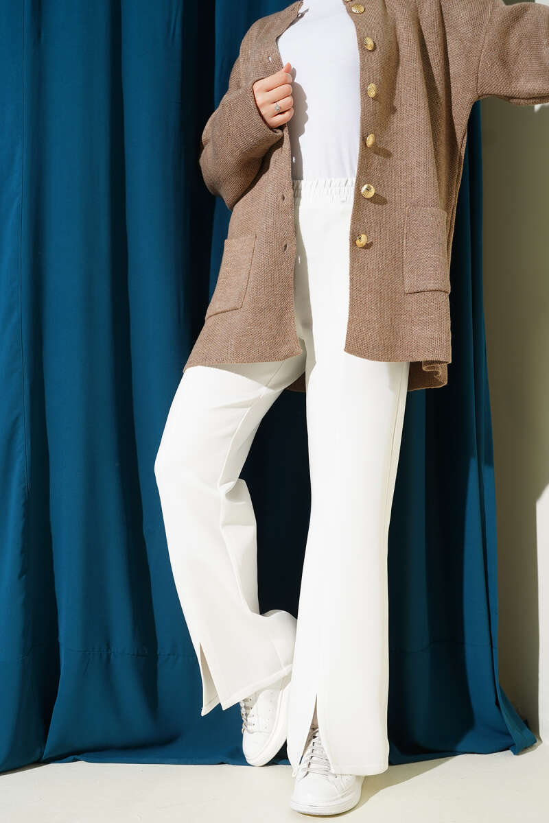Paçası Yırtmaçlı Scuba Pantolon Kahve