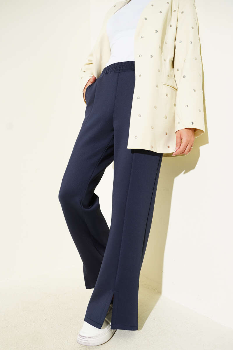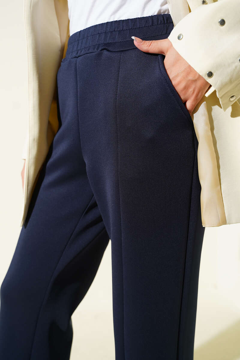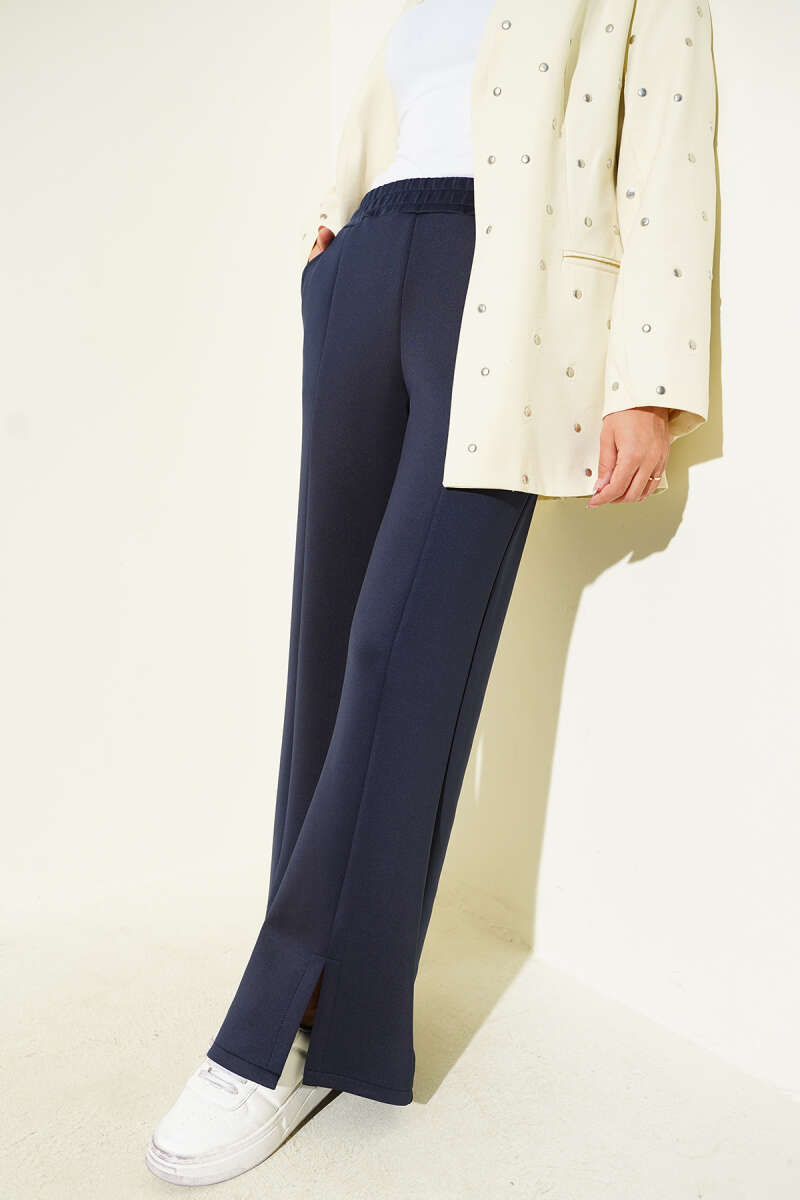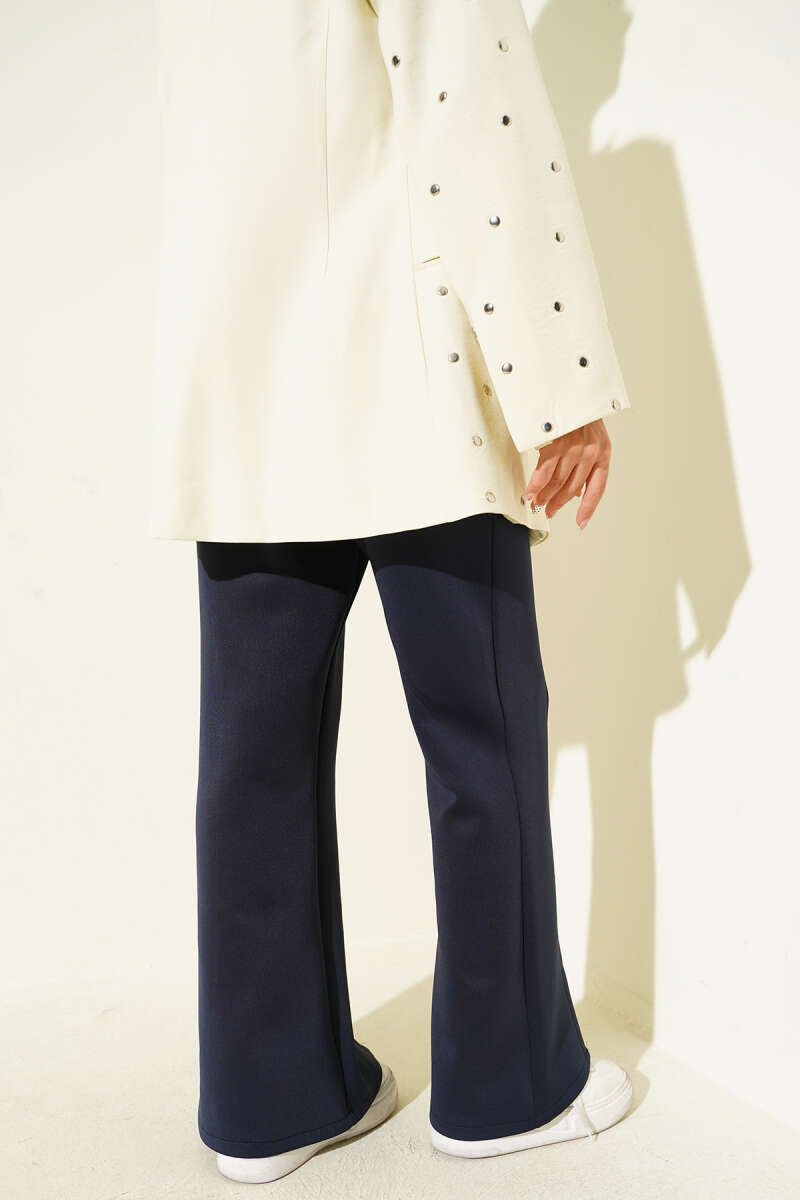 Bel Lastikli Geniş Paça Scuba Pantolon Bej