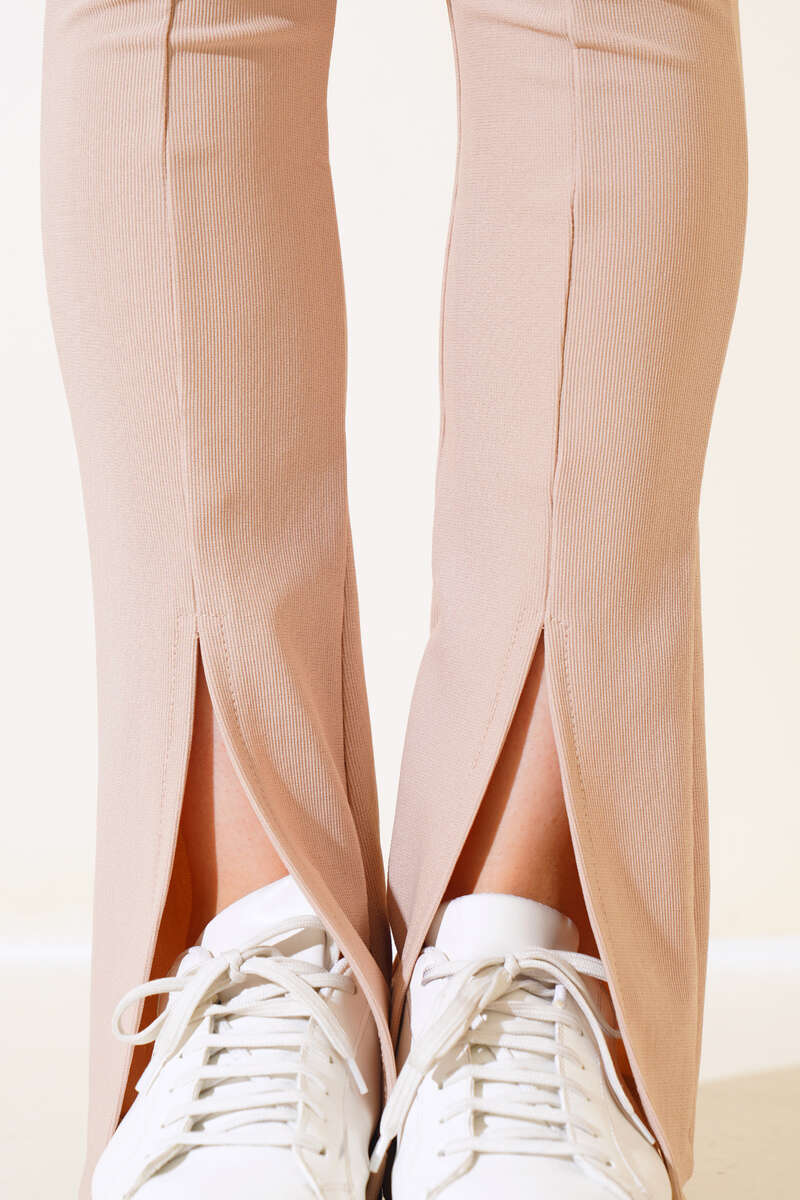 Paçası Yırtmaçlı Tayt Pantolon Camel