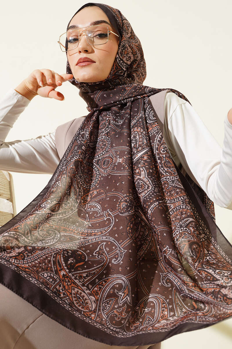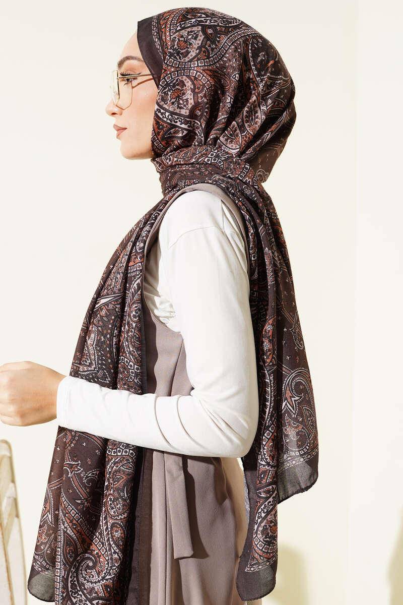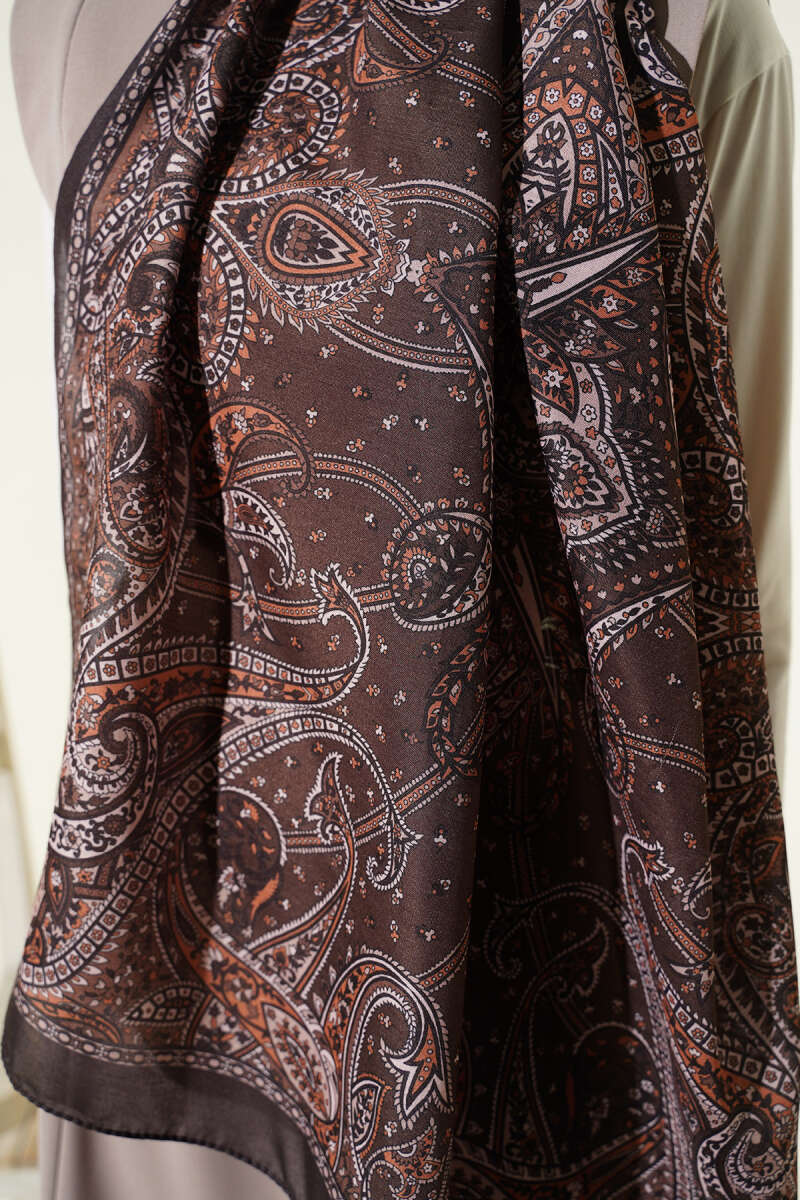 Batik Motifli Modal Şal Kahve