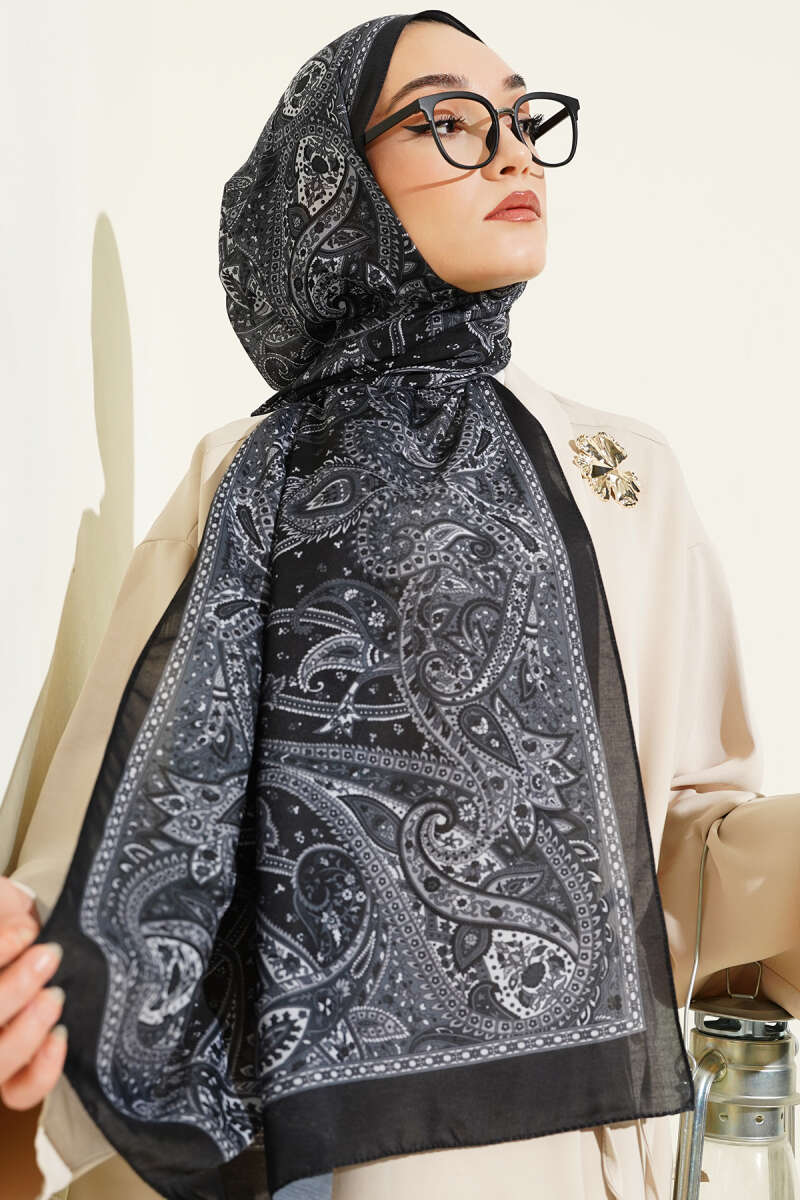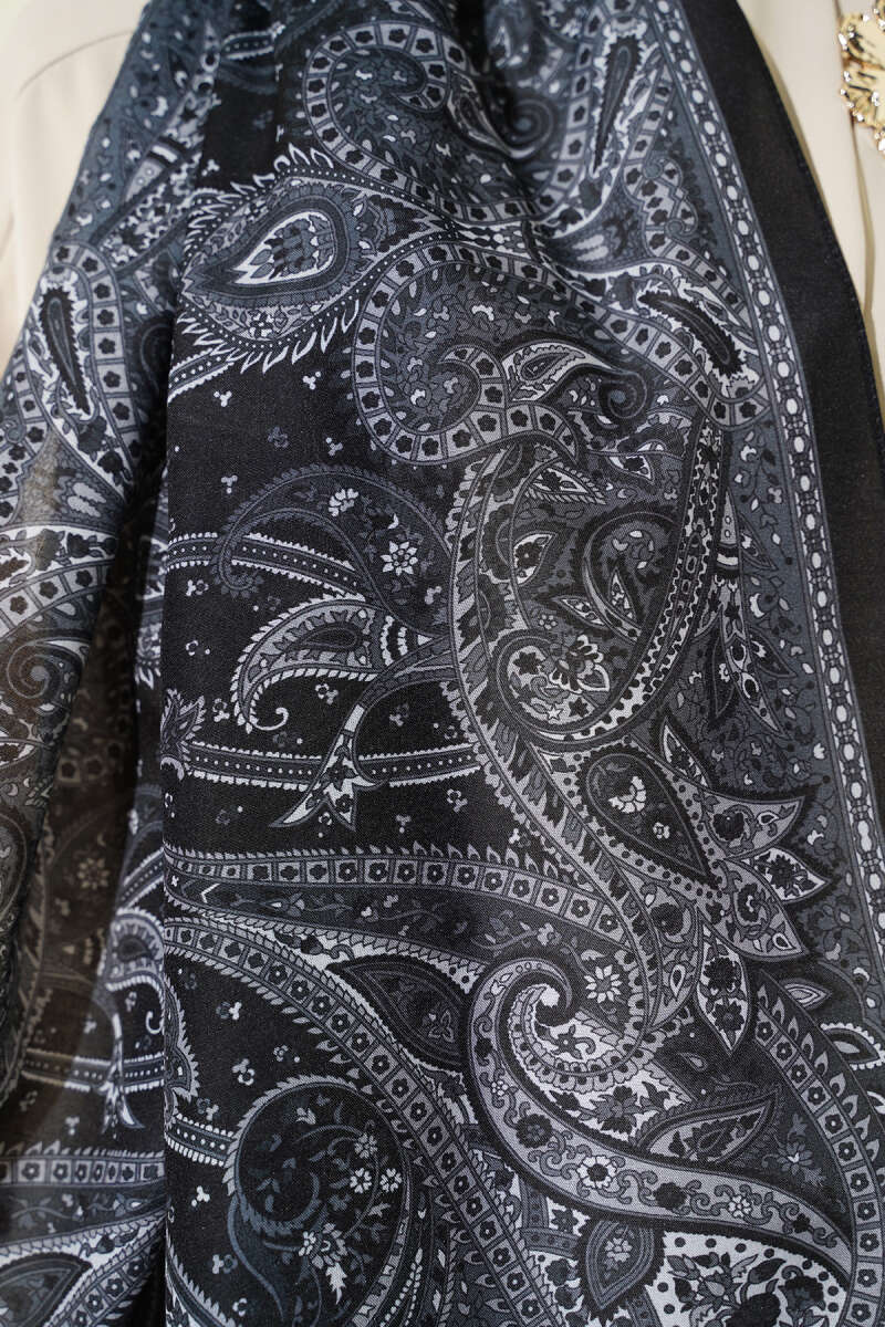 Paisley Desen Soft Şal Siyah Kahve