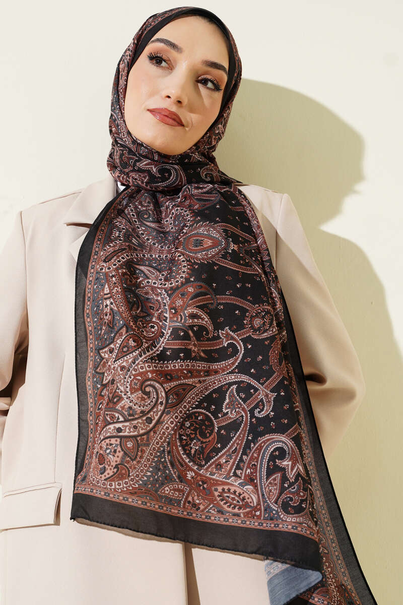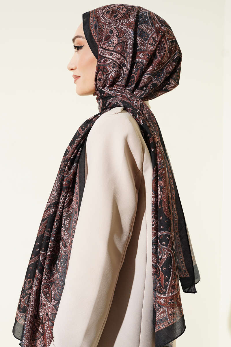 Batik Motifli Modal Şal Kahve