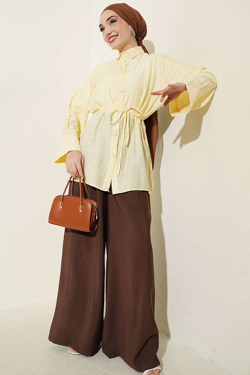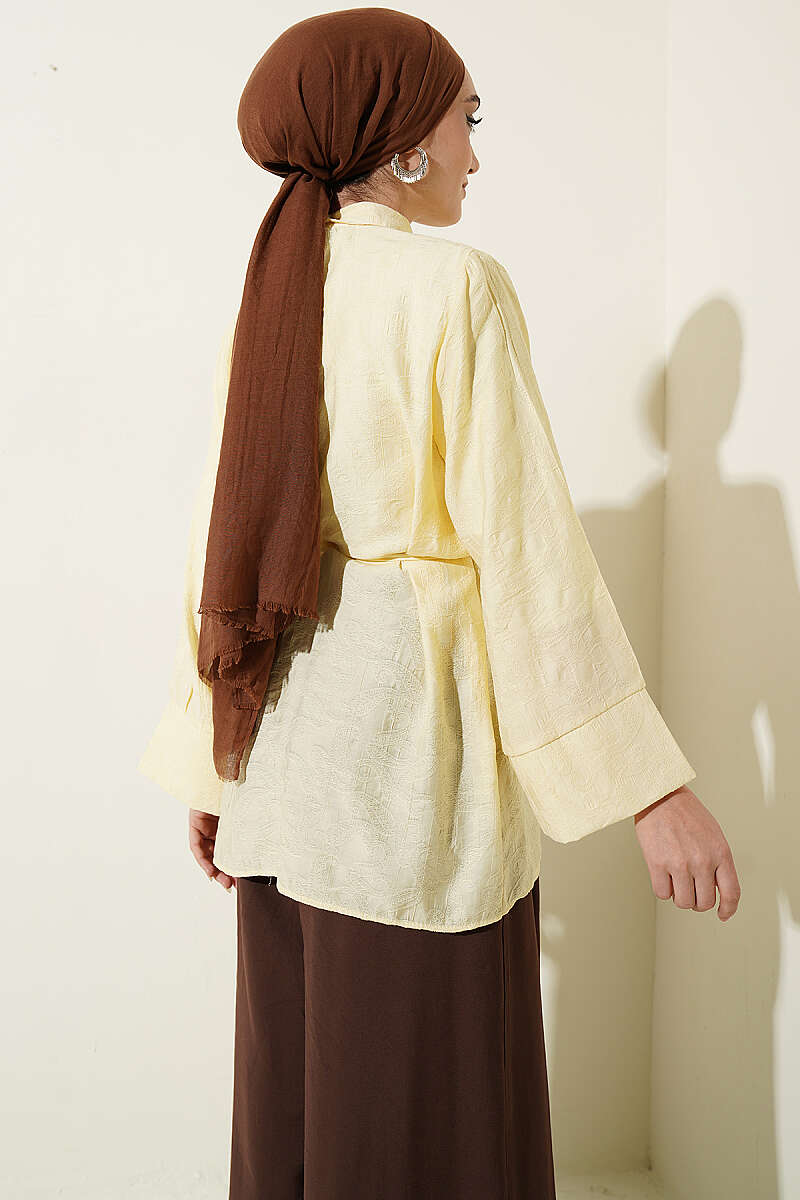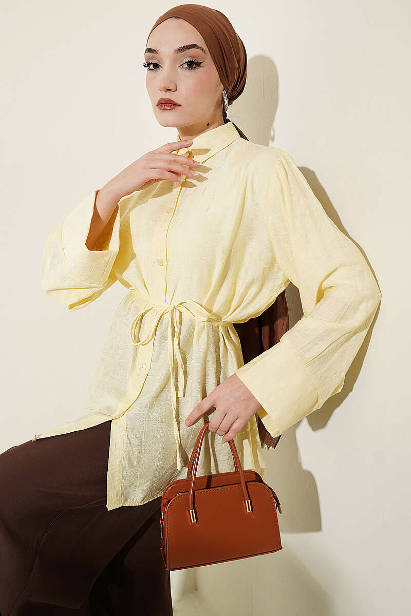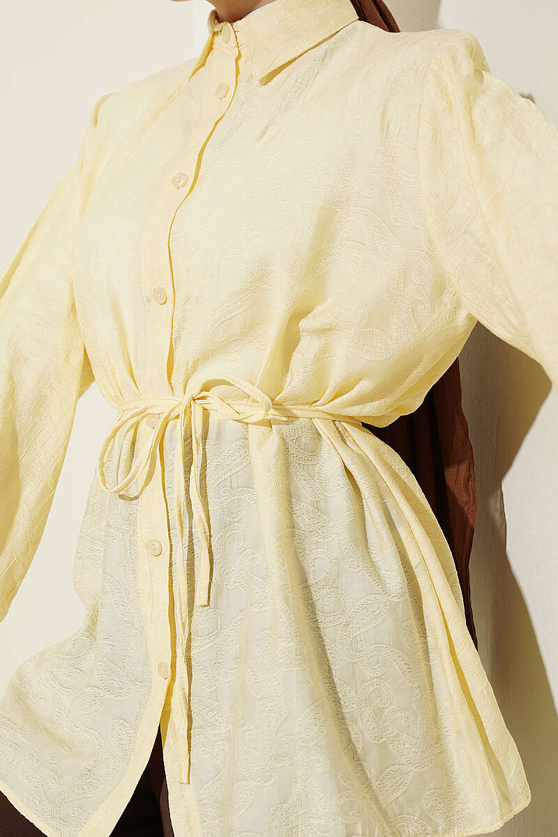 Paisley Desenli İp Kuşaklı Gömlek Sarı