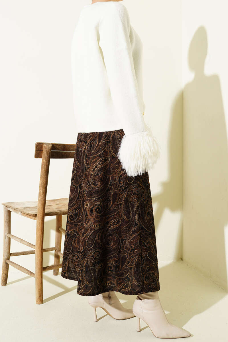 Paisley Desenli Kloş Etek Kahve