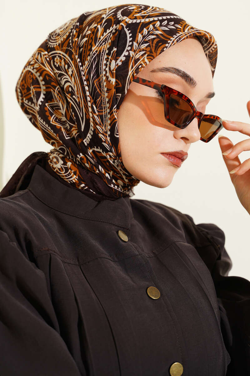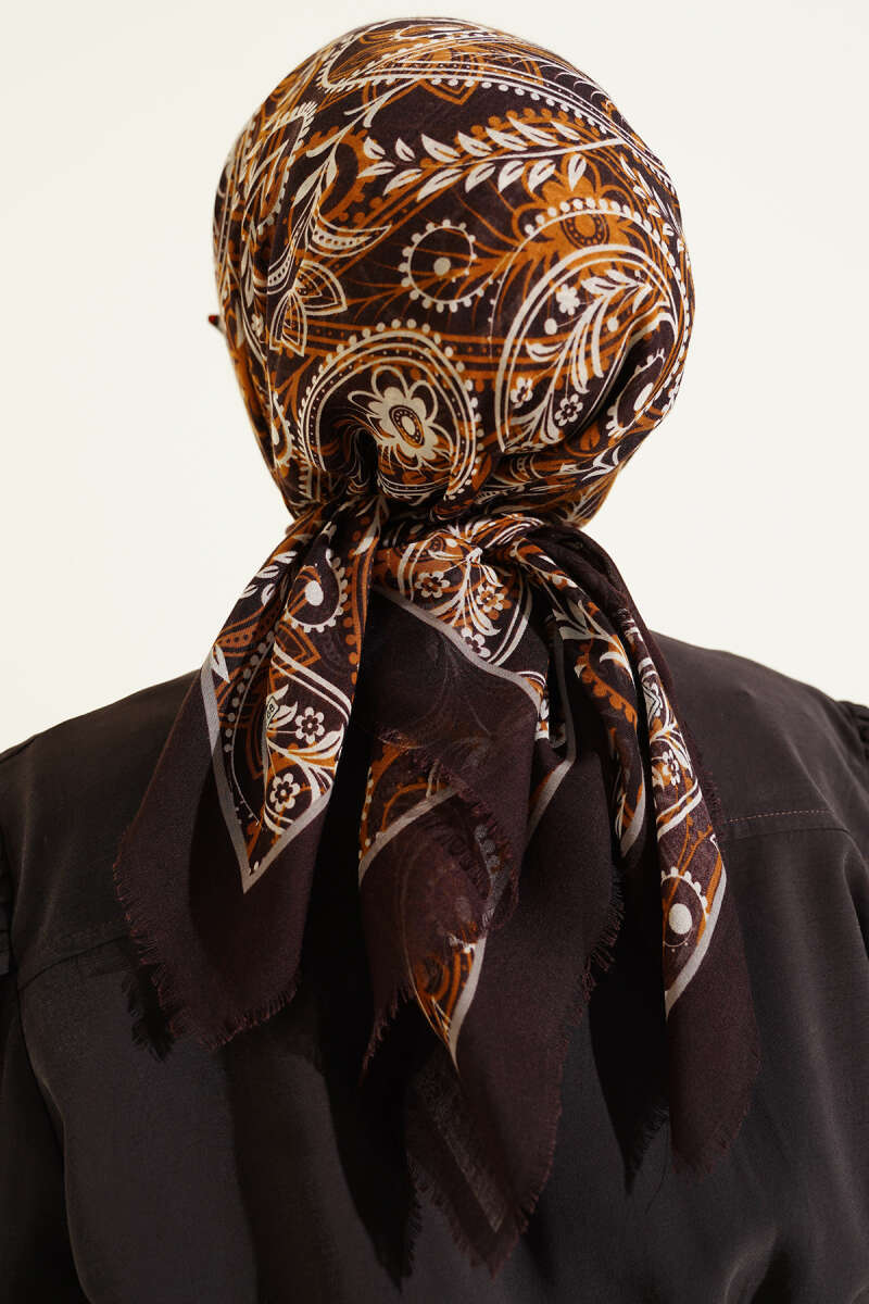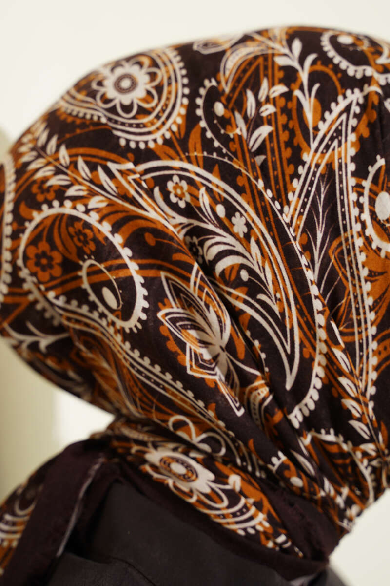 Paisley Flamu Cotton Eşarp Acı Kahve