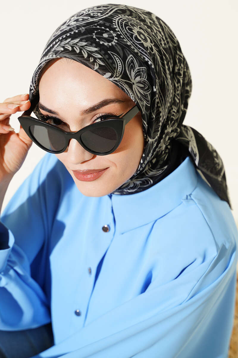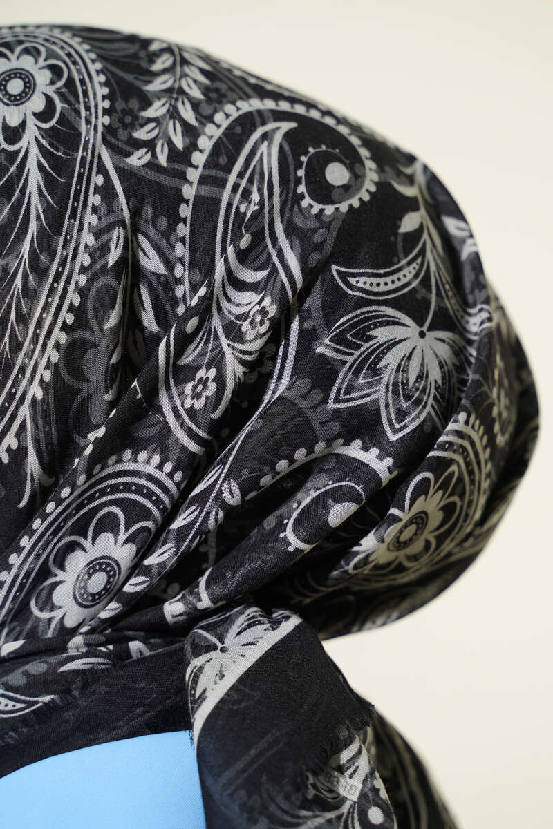 Paisley Flamu Cotton Eşarp Siyah Bej