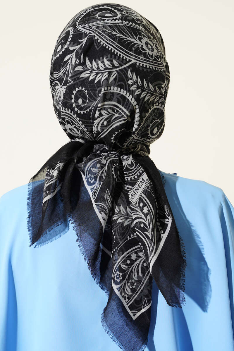 Paisley Flamu Cotton Eşarp Lacivert Mavi