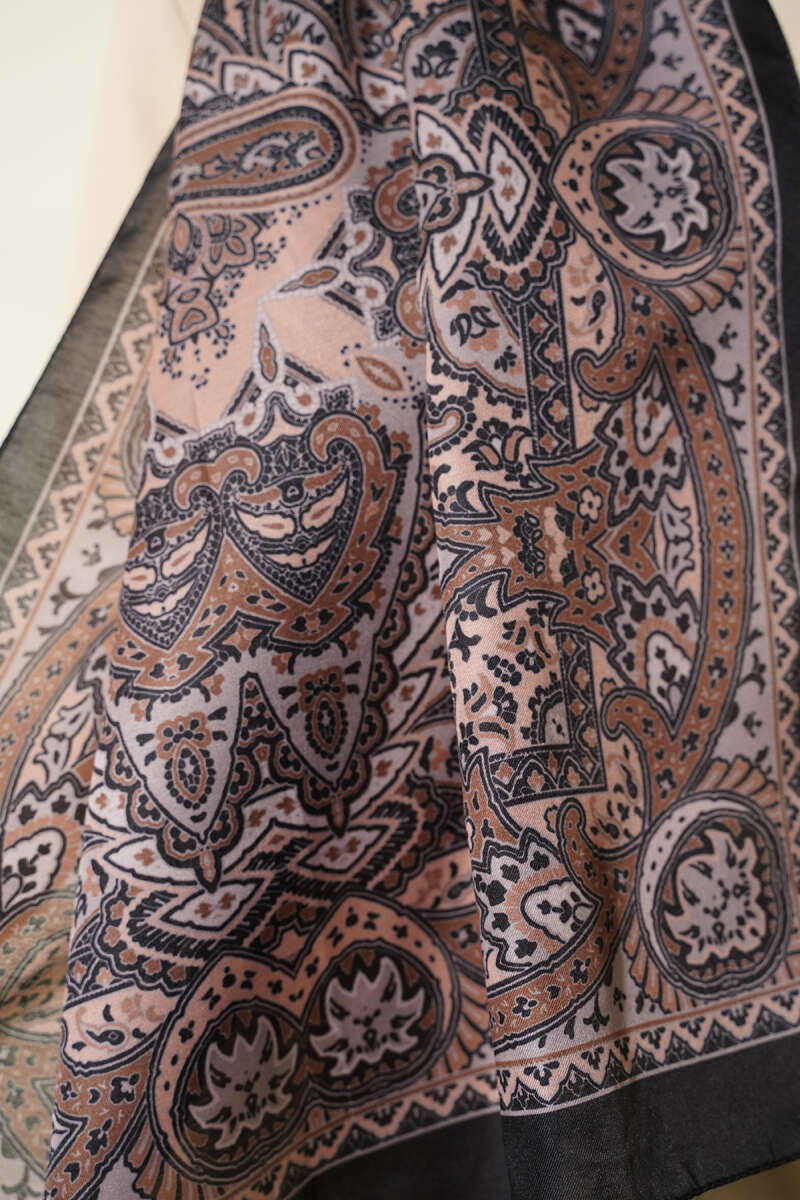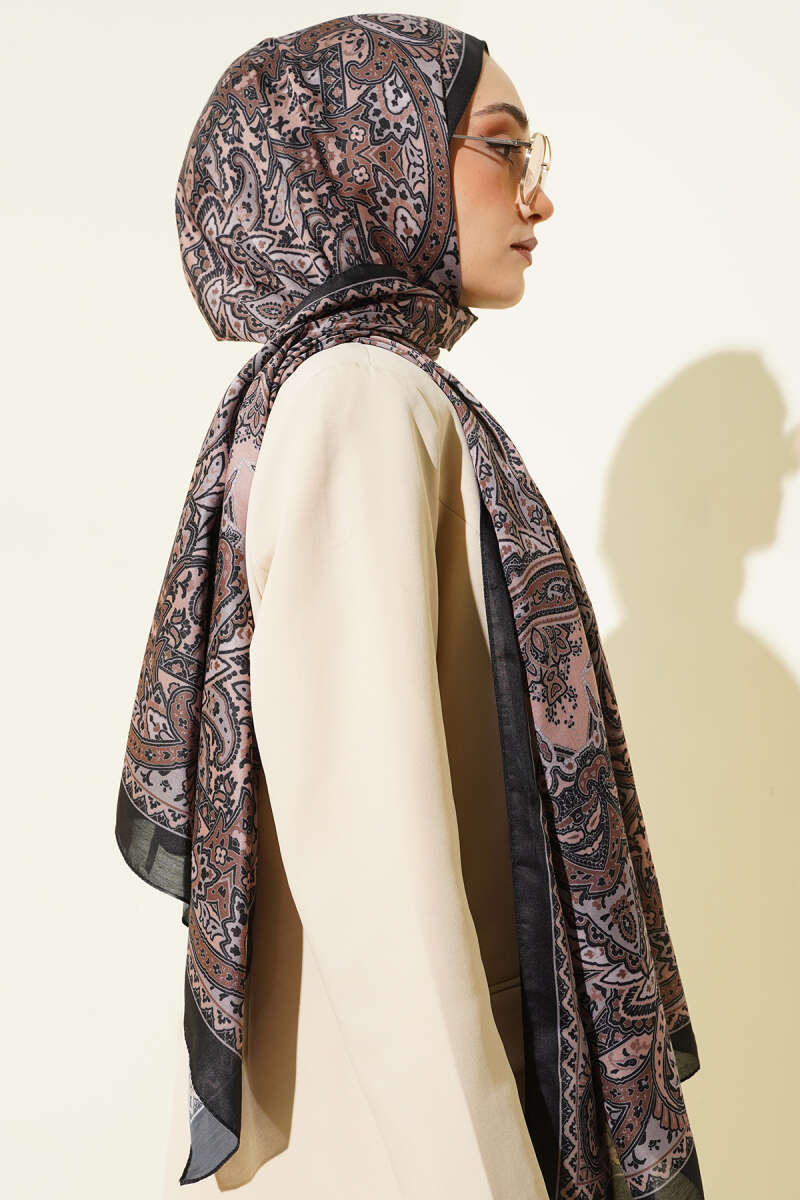 Ebruli Çiçekli Bambu Kraş Eşarp Füme