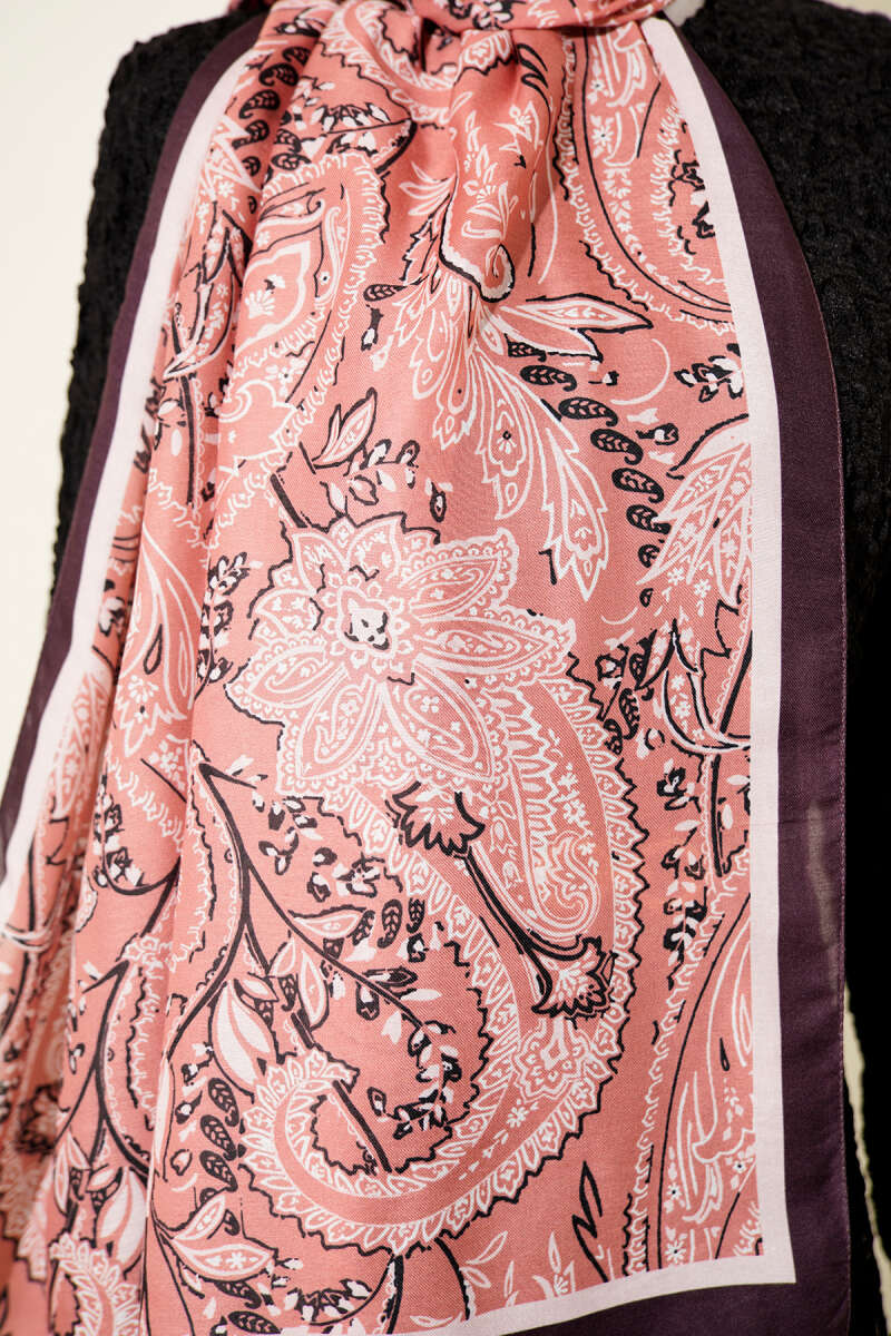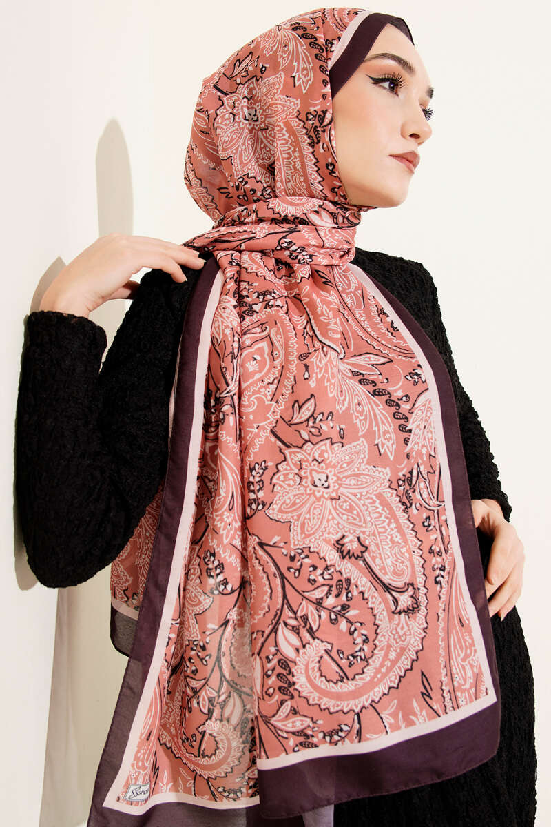 Şerit Geçişli Desenli Bambu Eşarp Kum Bej