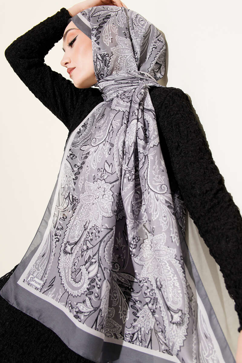 Çiçek Desen Bambu Kraş Eşarp Su Yeşili