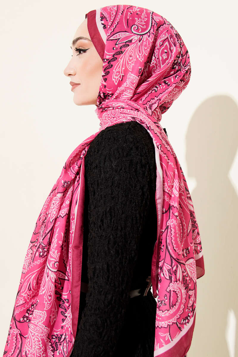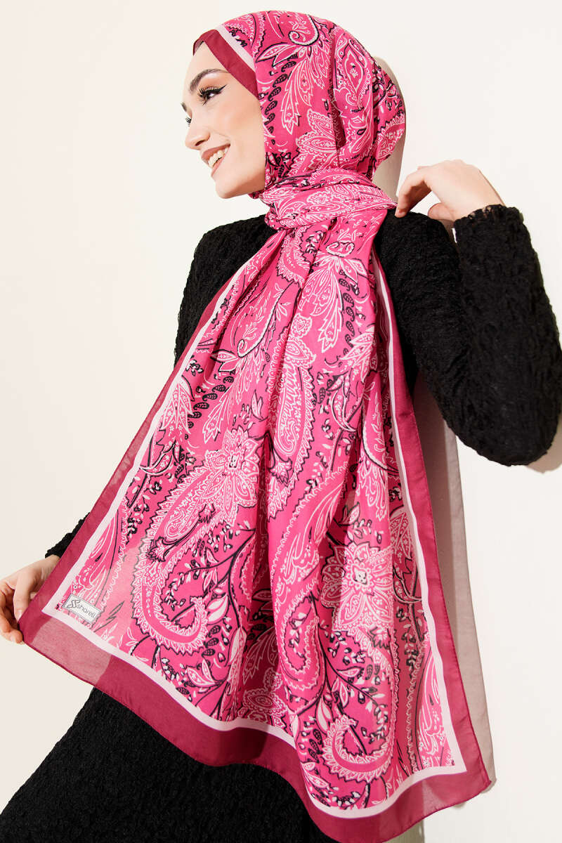 Paisley Motifli Soft Şal Fuşya