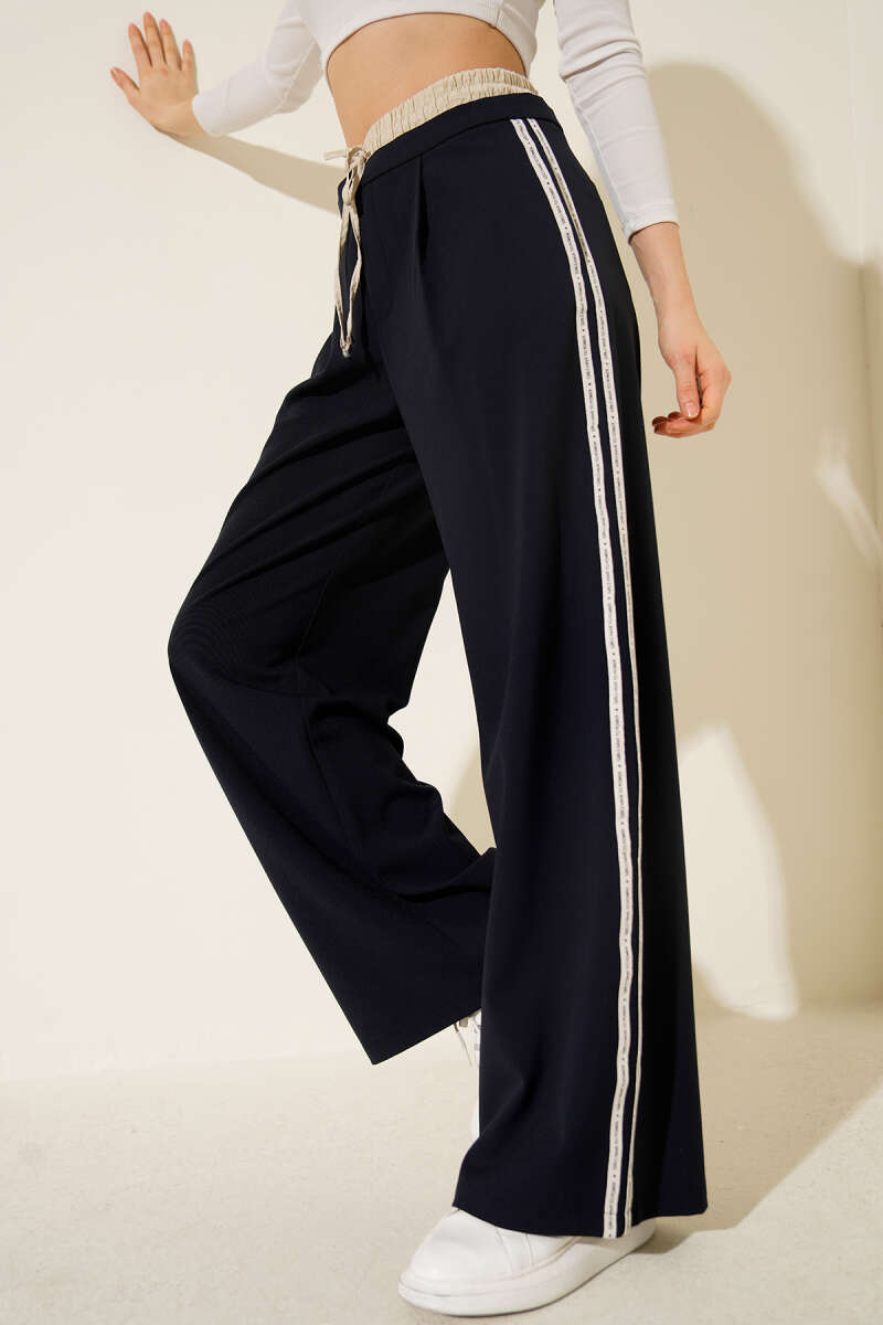 Palazzo Bel Garnili Şeritli Pantolon Lacivert