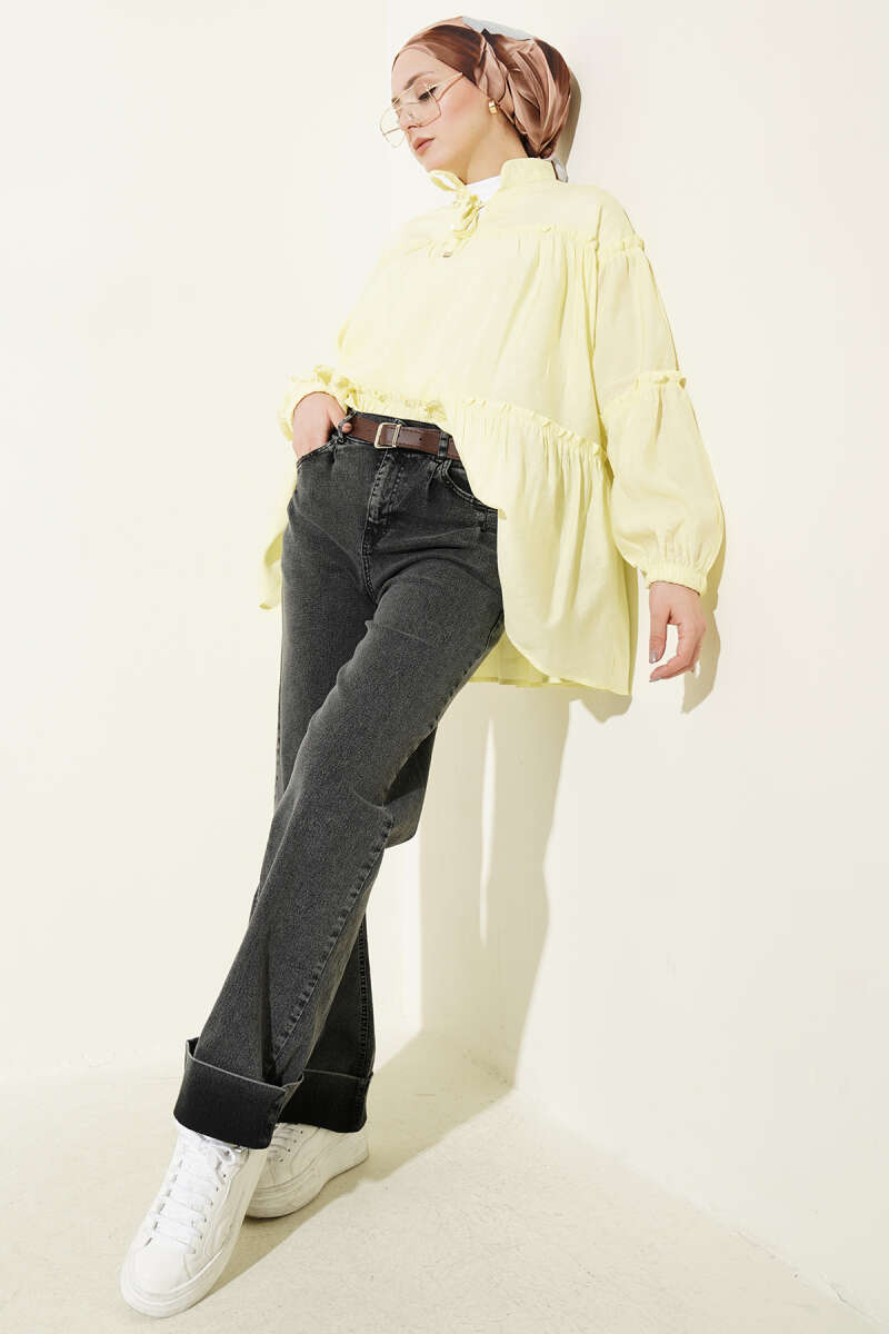 Palazzo Kemerli Kot Pantolon Açık Mavi