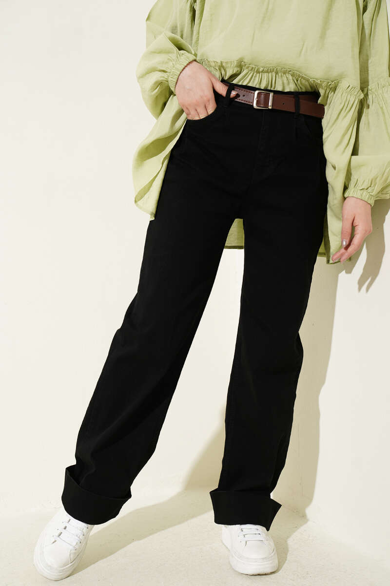 Palazzo Kemerli Kot Pantolon Siyah