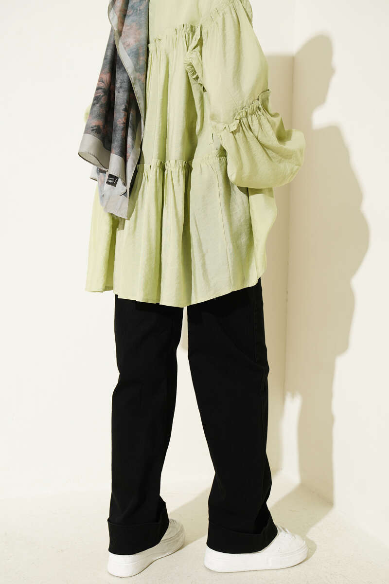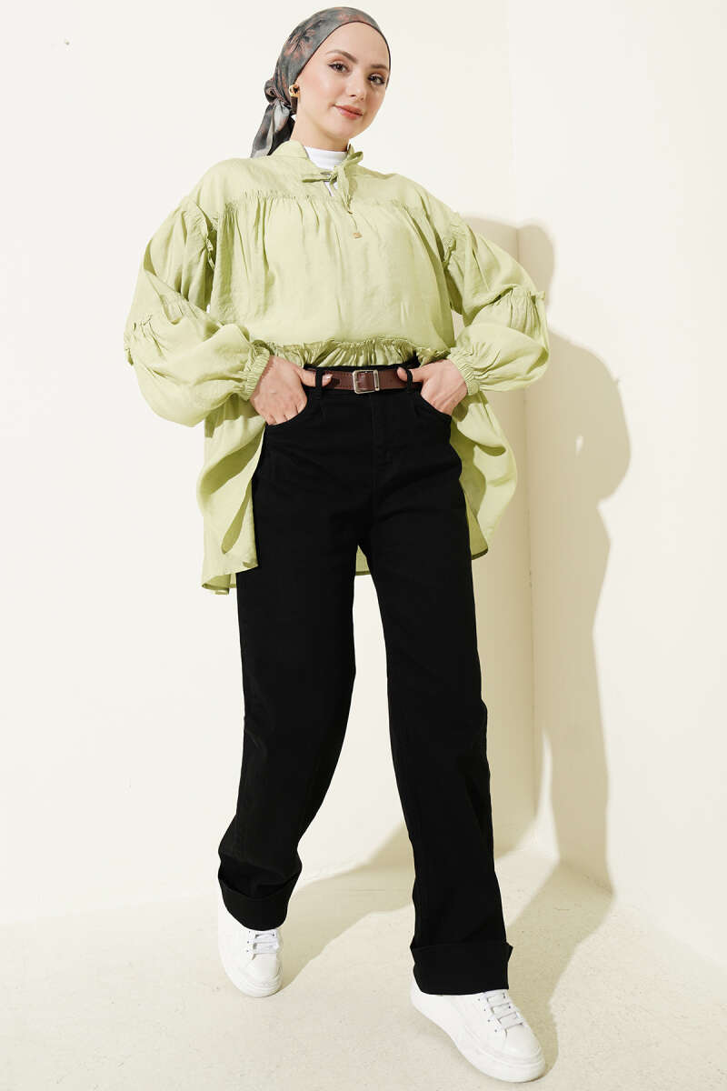 Pileli Kemerli Oversize Pantolon Çağla Yeşili