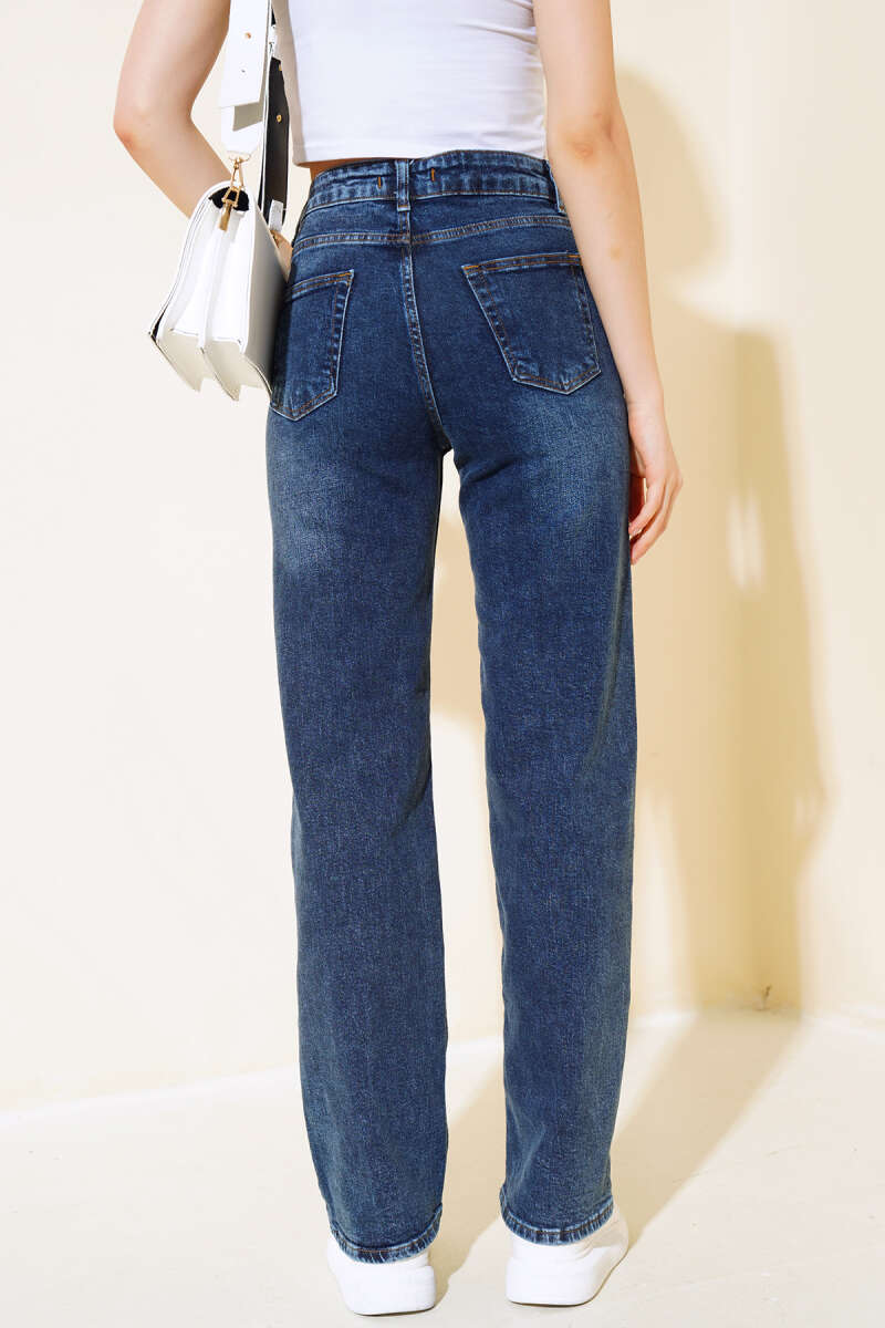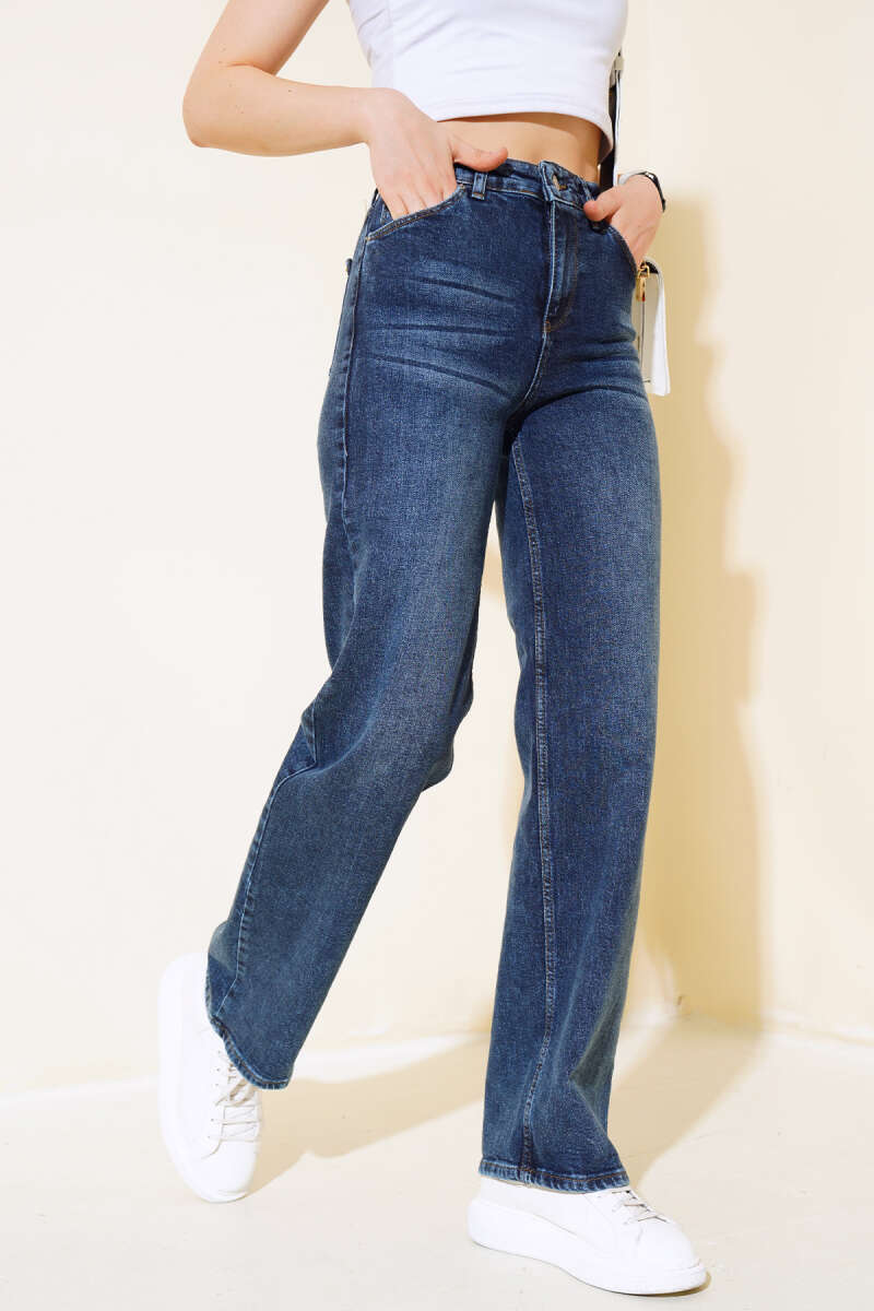 Yeni sezon kot pantolon modelimiz sizlerle beraber. Pantolonumuz yüksek beldir. Beli fermuarlı ve düğmelidir. Plazzo modeldir. Belinde beş adet kemer köprüsü vardır. Kombinlerinizin favorisi olacaktır.