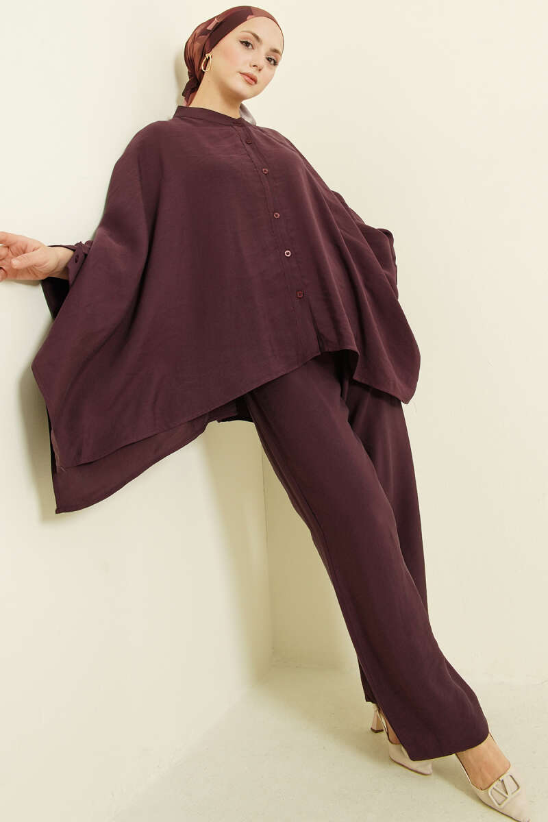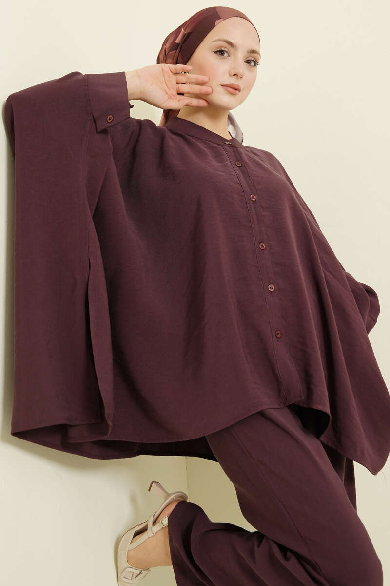 Gold Düğmeli Garnili Salaş İkili Takım Bordo