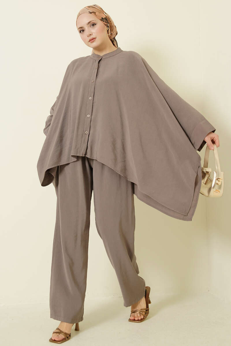 Gold Düğmeli Garnili Salaş İkili Takım Kahve