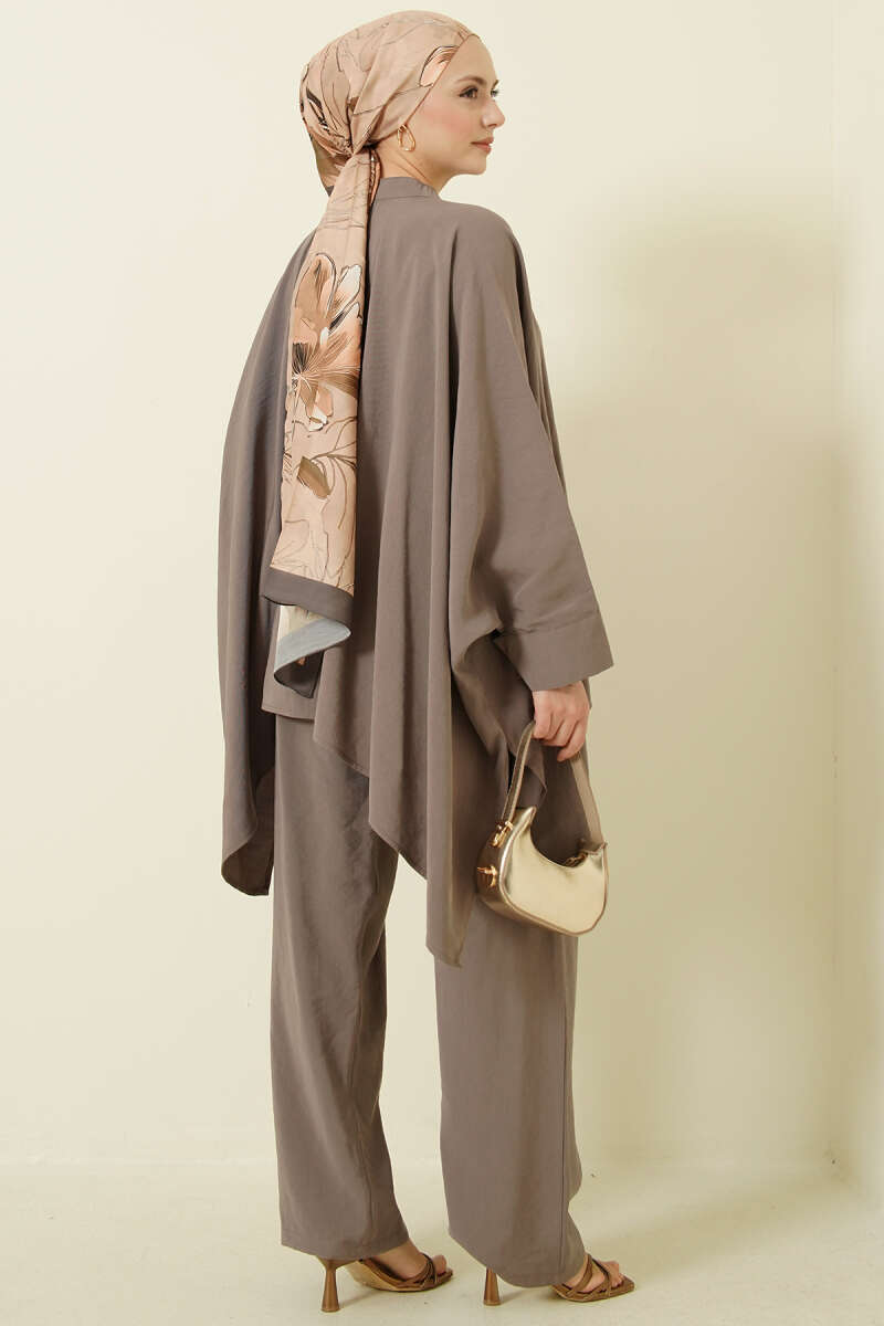 Kol Fiyonk Detaylı Dabıl İkili Takım Kahve