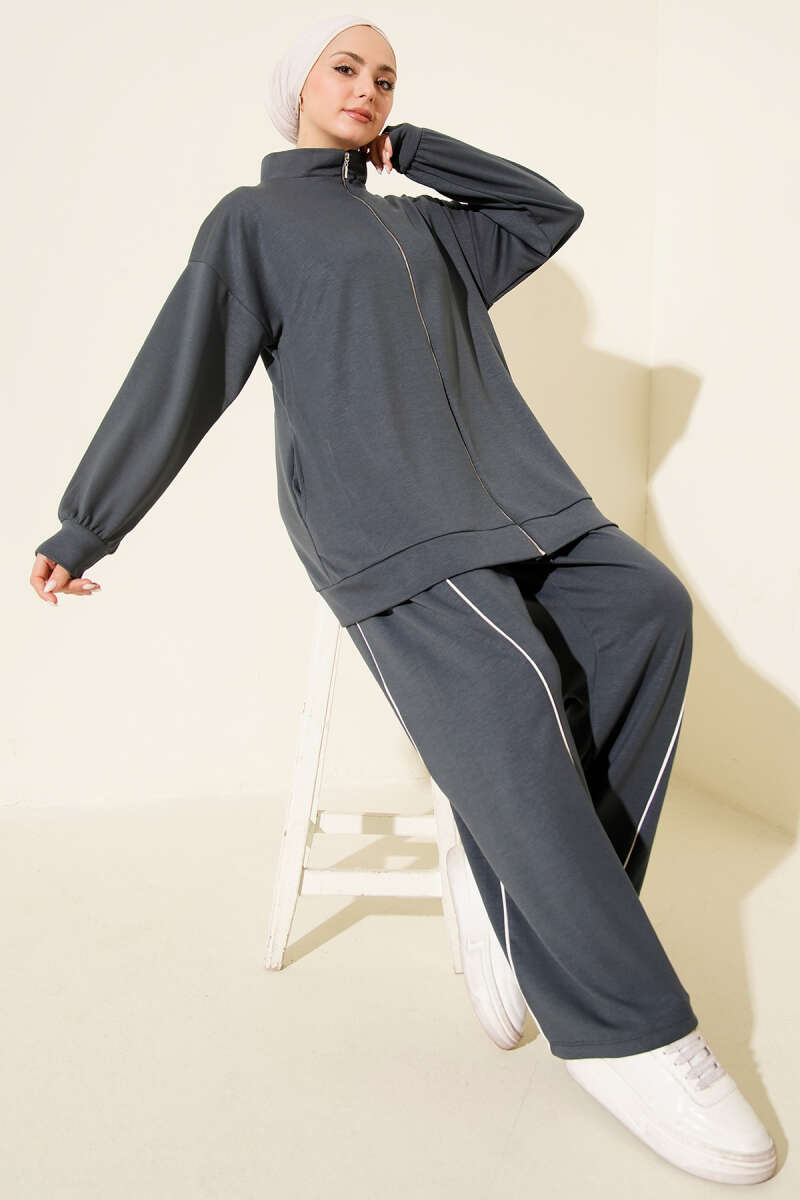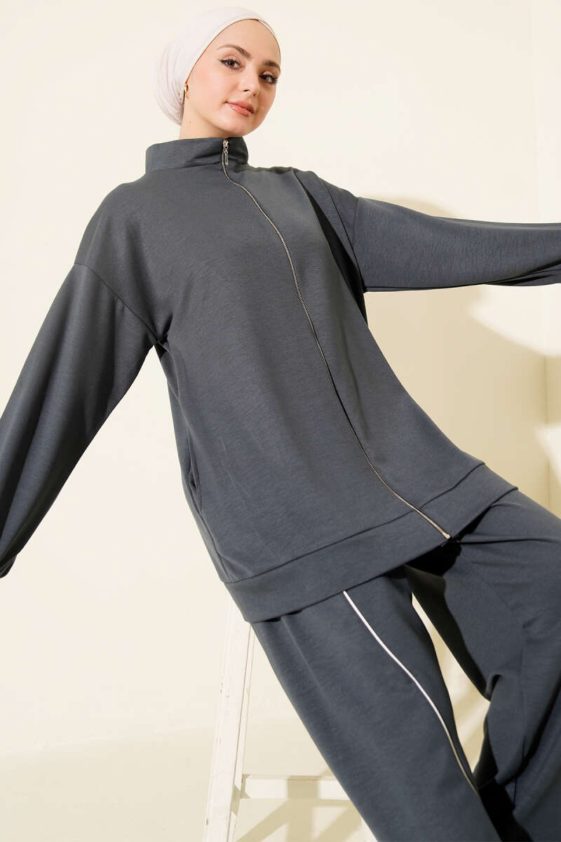 Pantolon Biyeli Fermuarlı Loyşa İkili Takım Füme