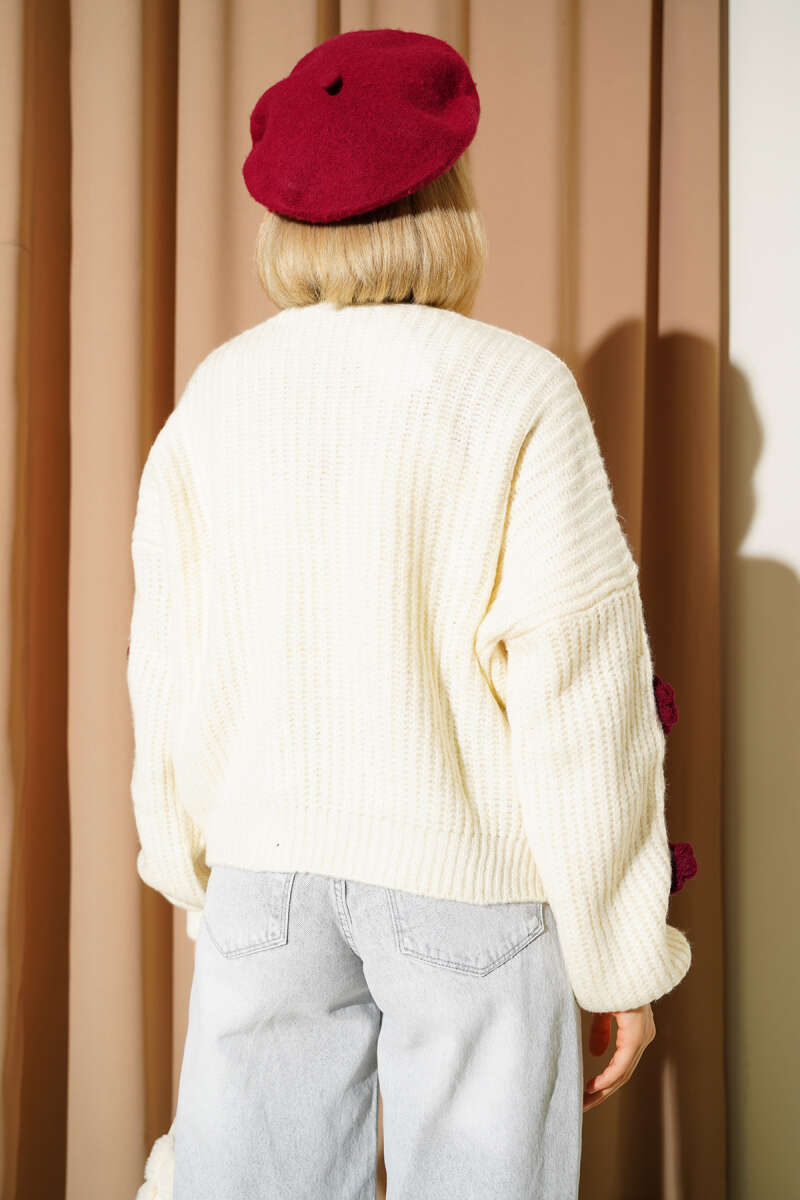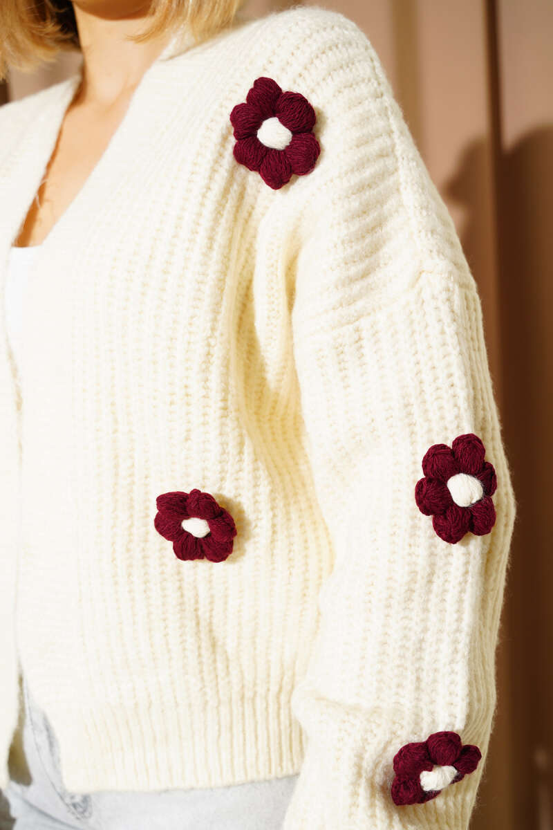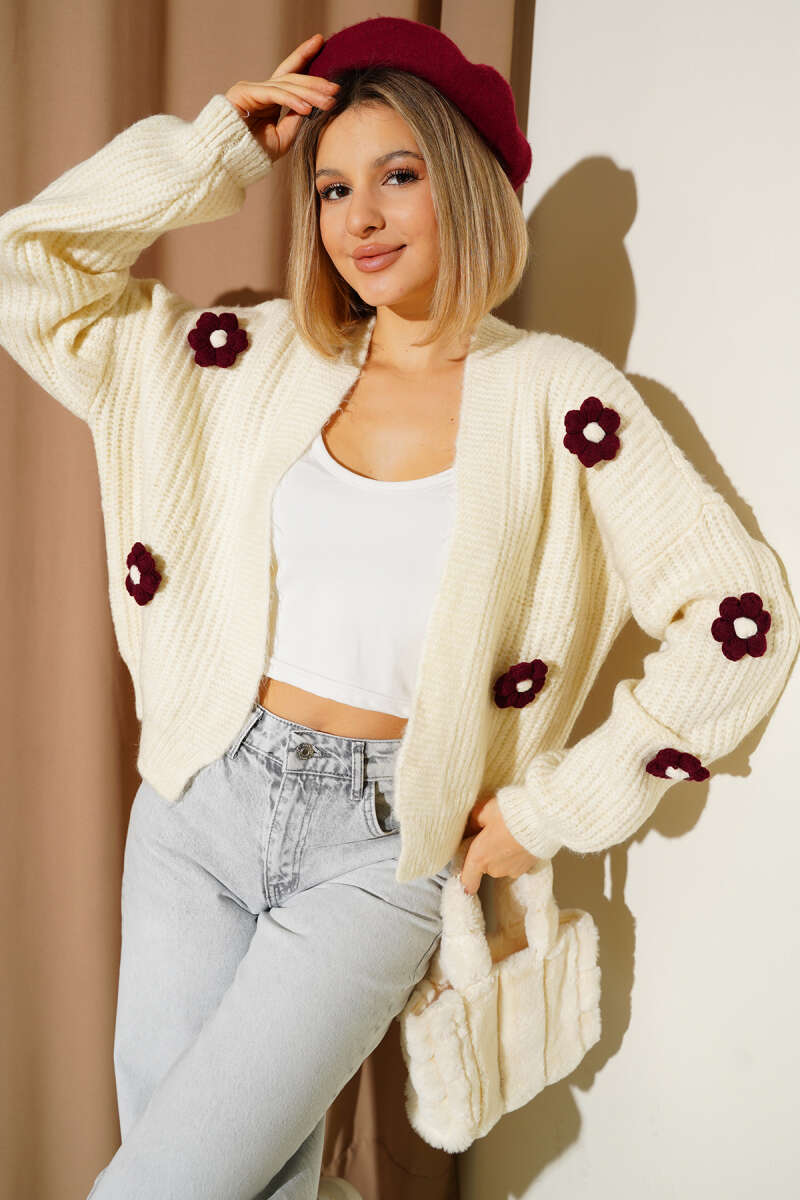 Papatya Detaylı Yumoş Hırka Ekru