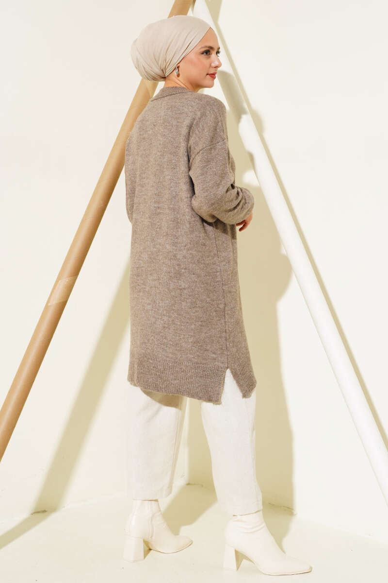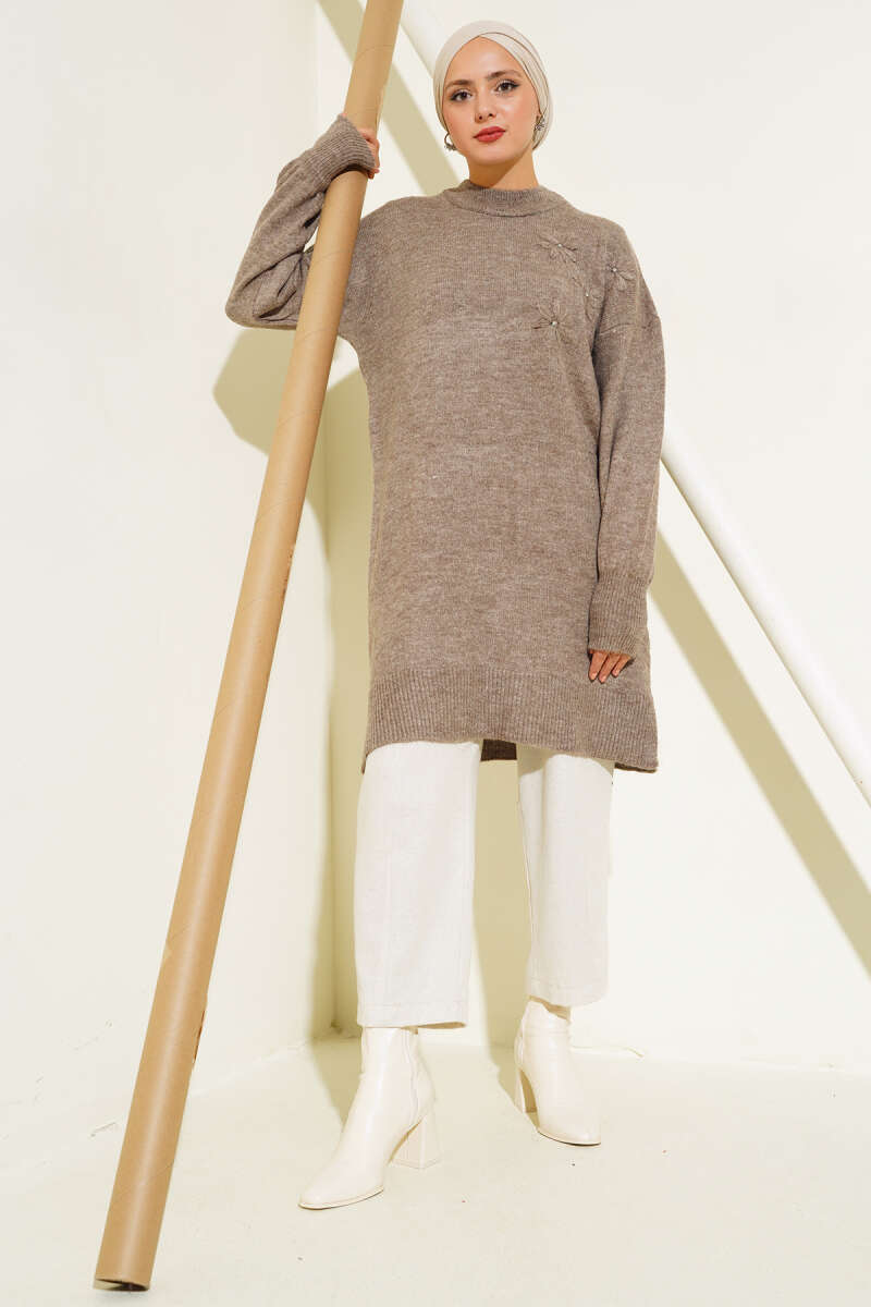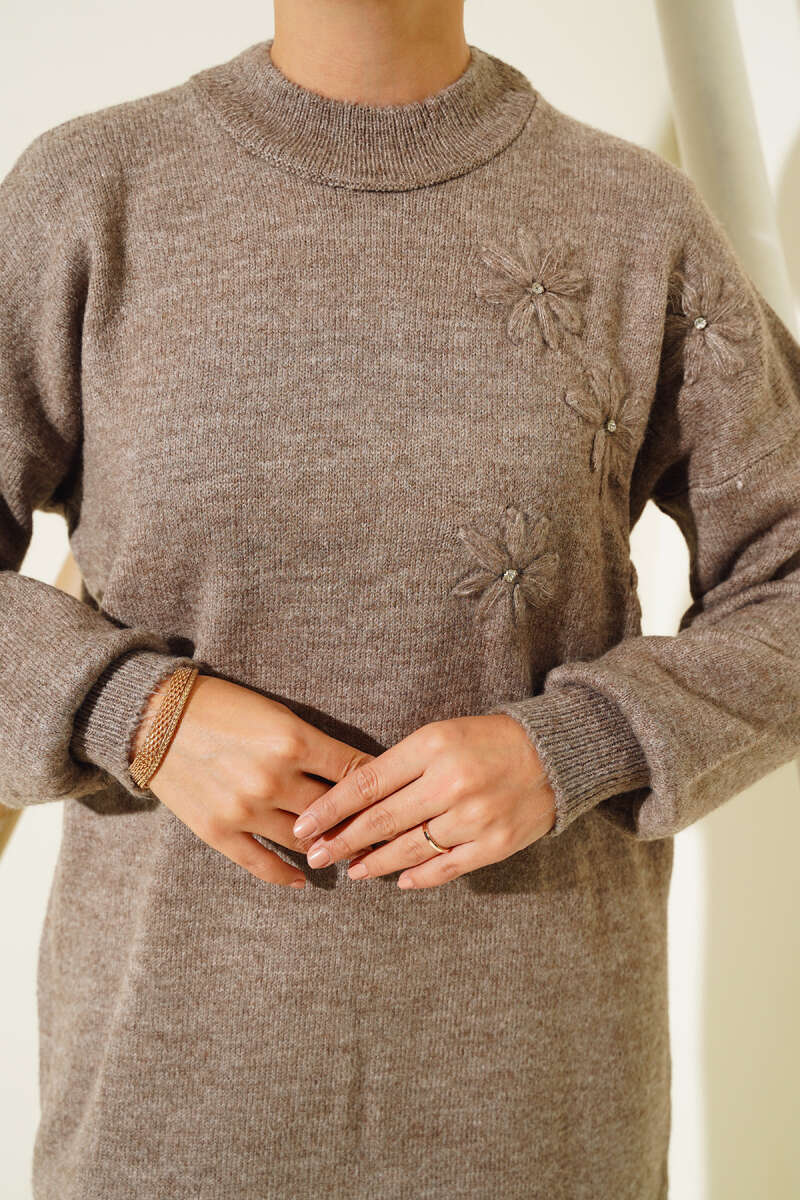 Papatya Detaylı Yumoş Triko Tunik Vizon