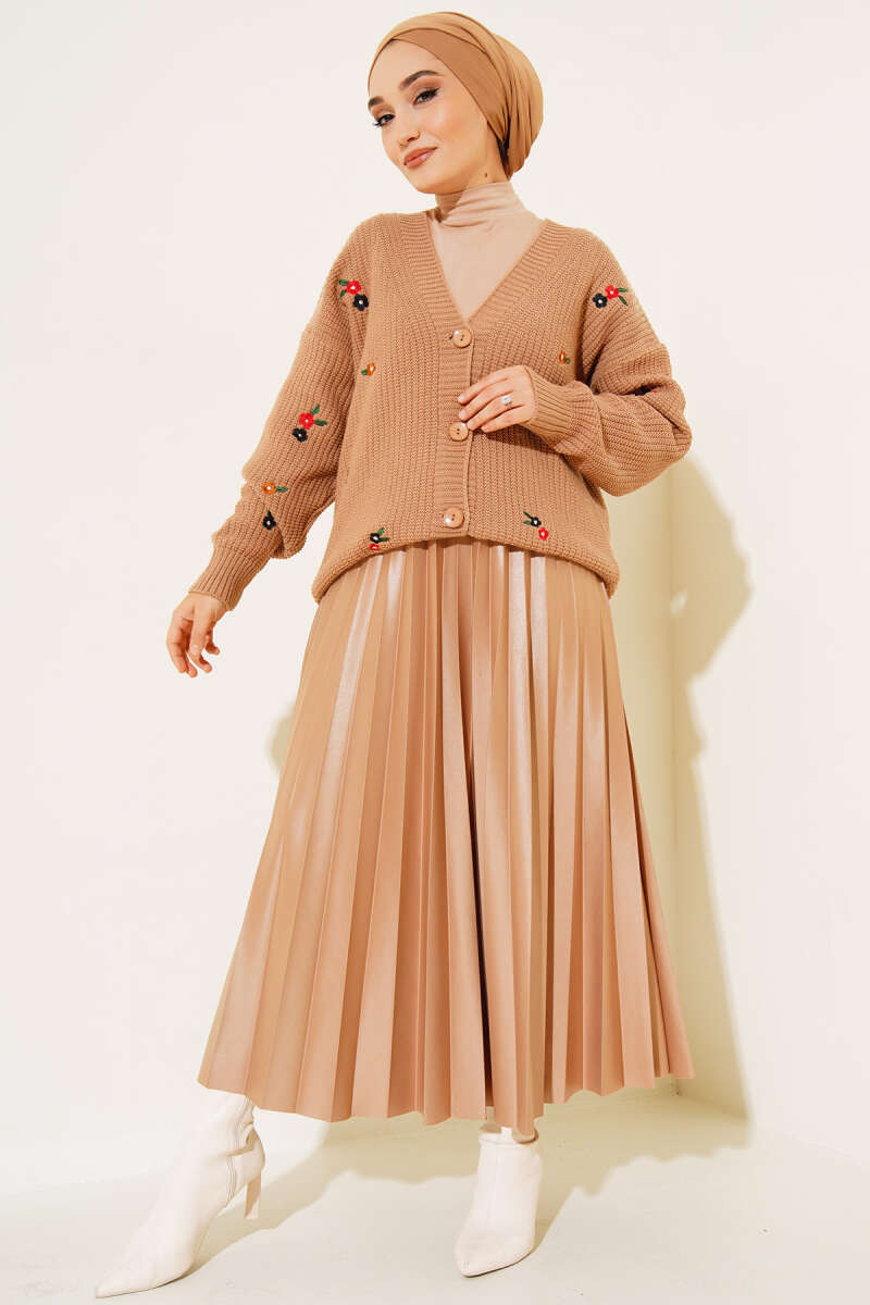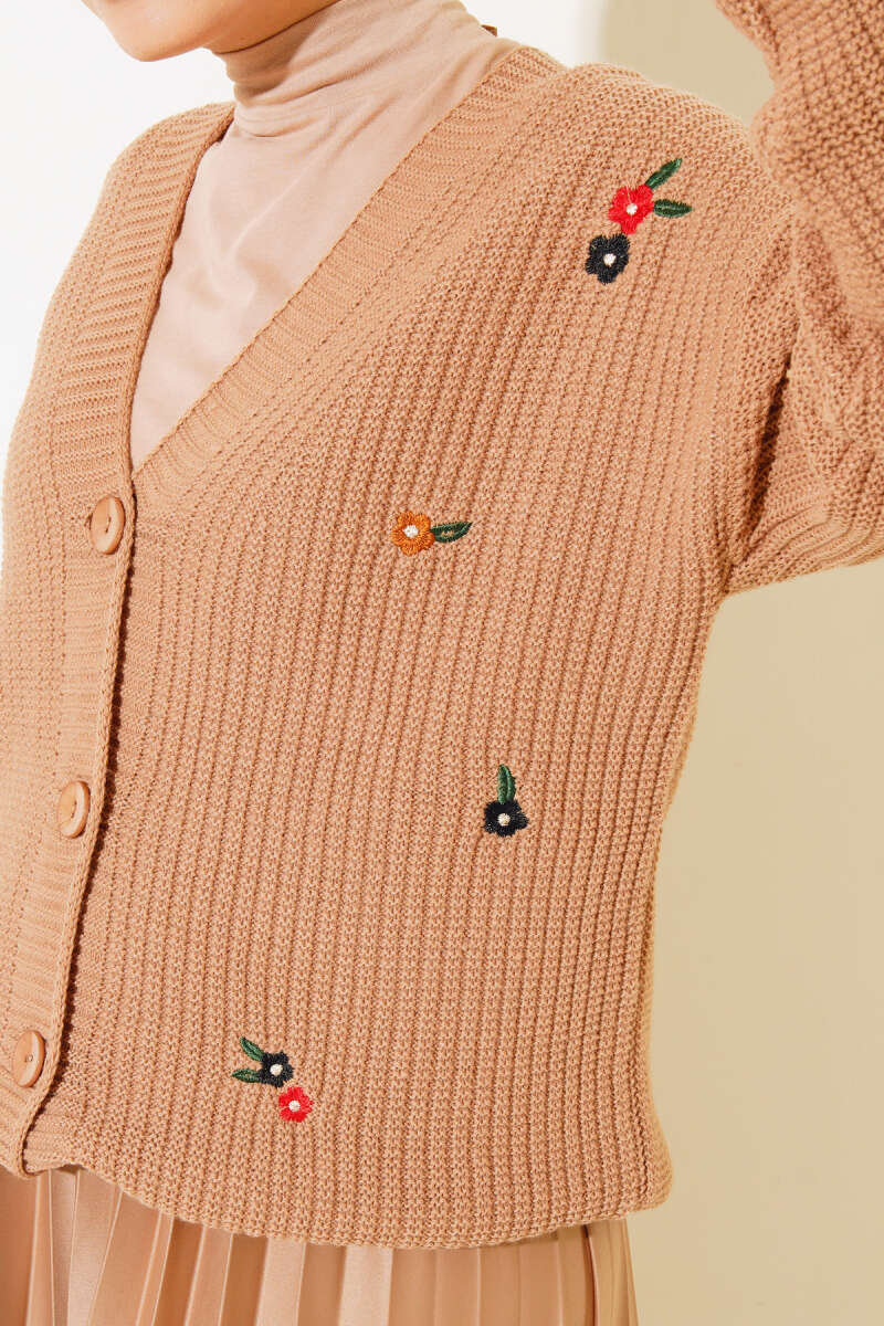 Pirinç Örgü Basic Triko Hırka Nar Çiçeği