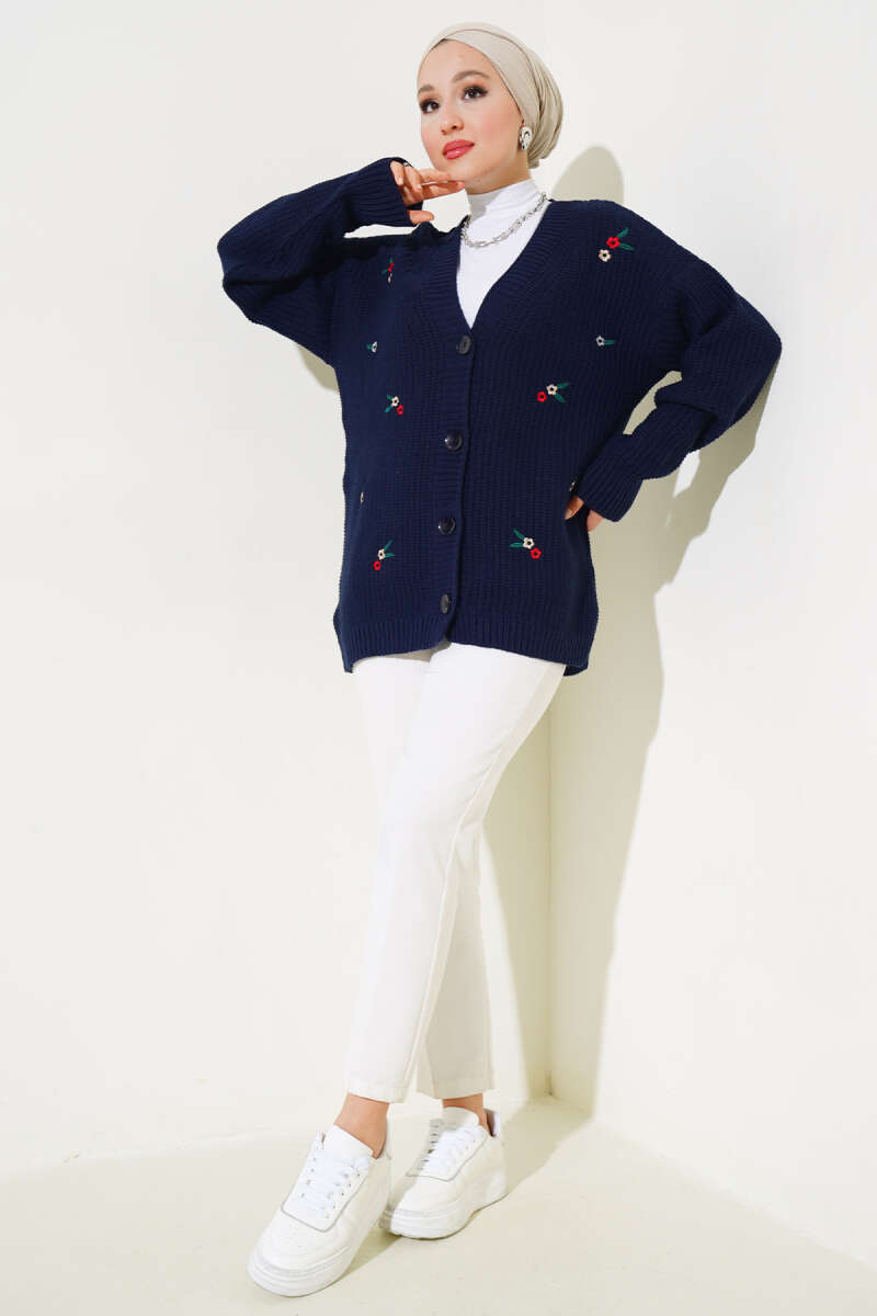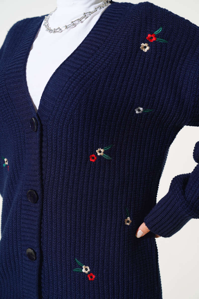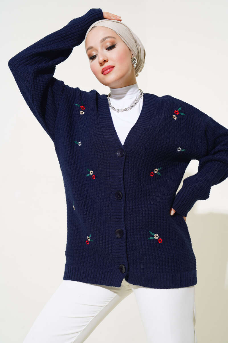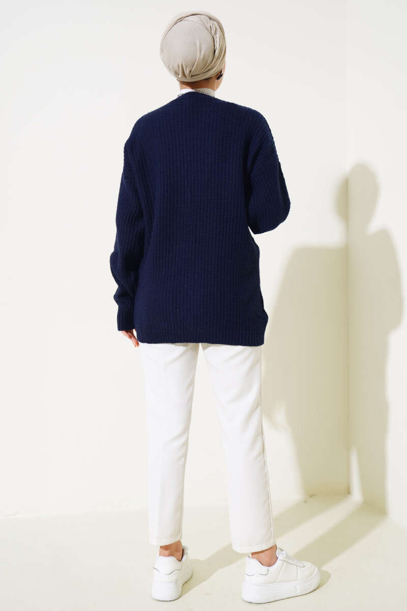 Pirinç Örgü Basic Triko Hırka Mavi