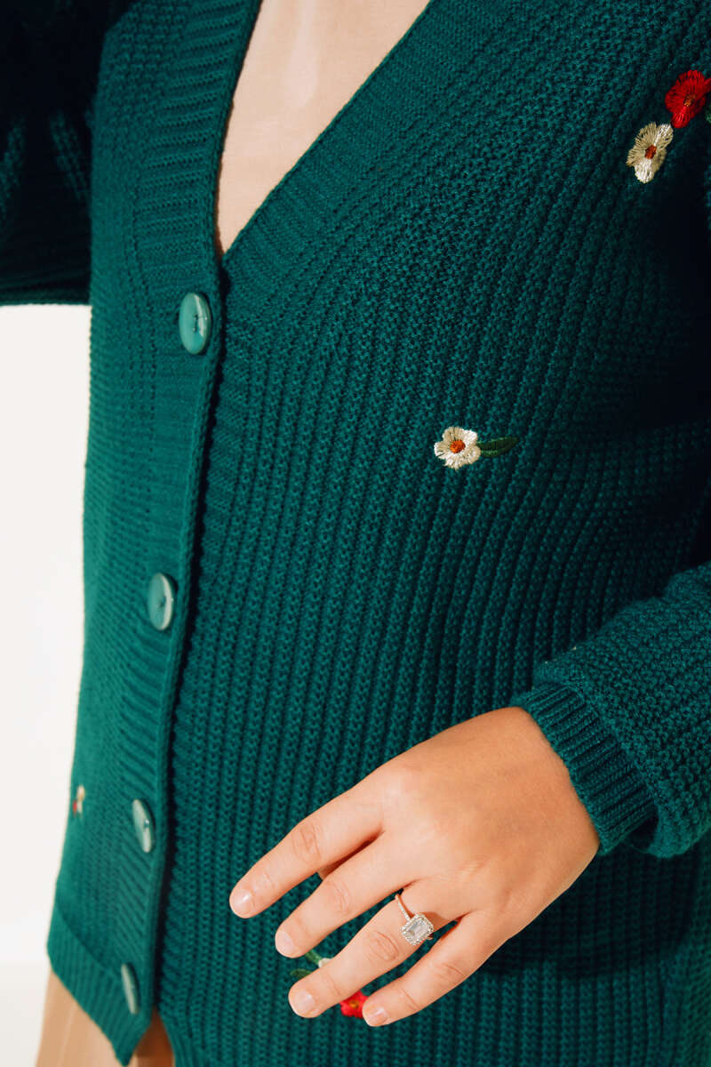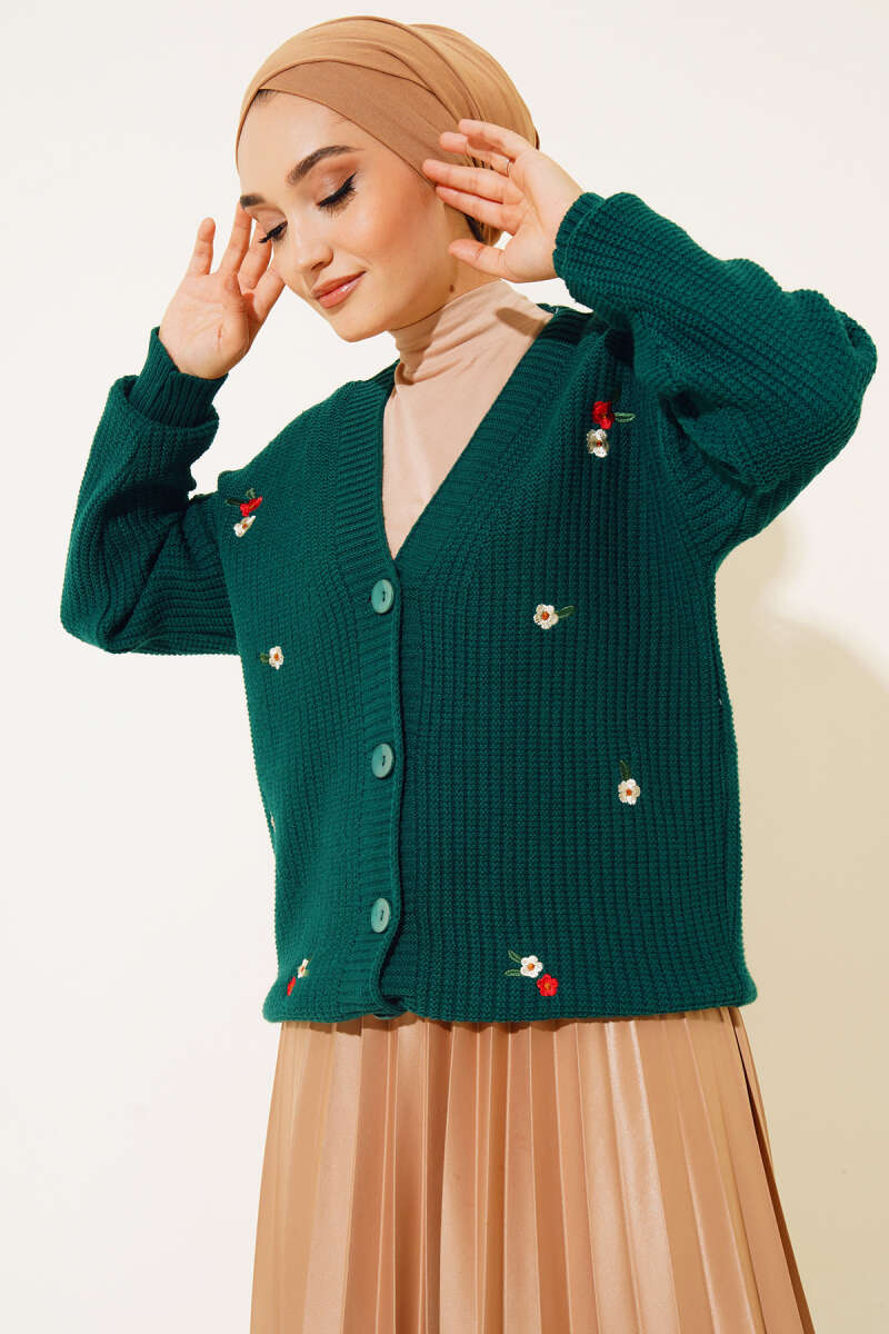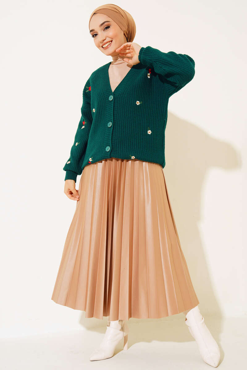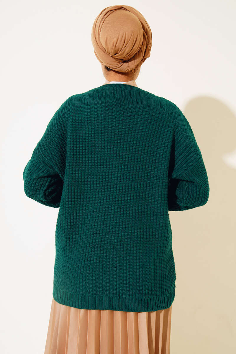 Pirinç Örgü Basic Triko Hırka Nar Çiçeği