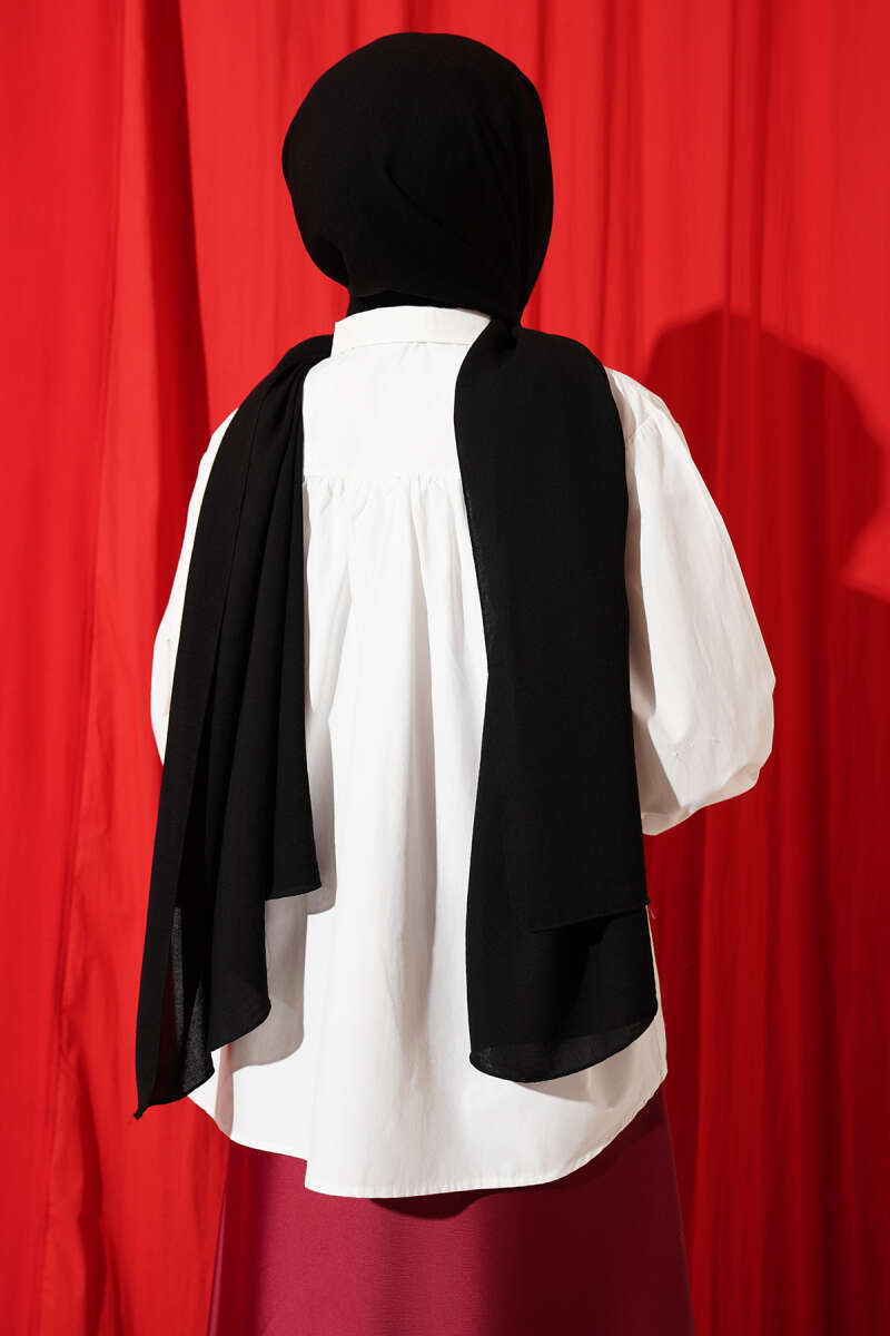 Beyaz gömleğin sadeliğini, siyahın asaletini simgeleyen dev papatya nakışıyla buluşturun! Bu tasarım, minimalizmi grafik bir detayla hareketlendirerek günlük stilinize özgün bir dokunuş katıyor.