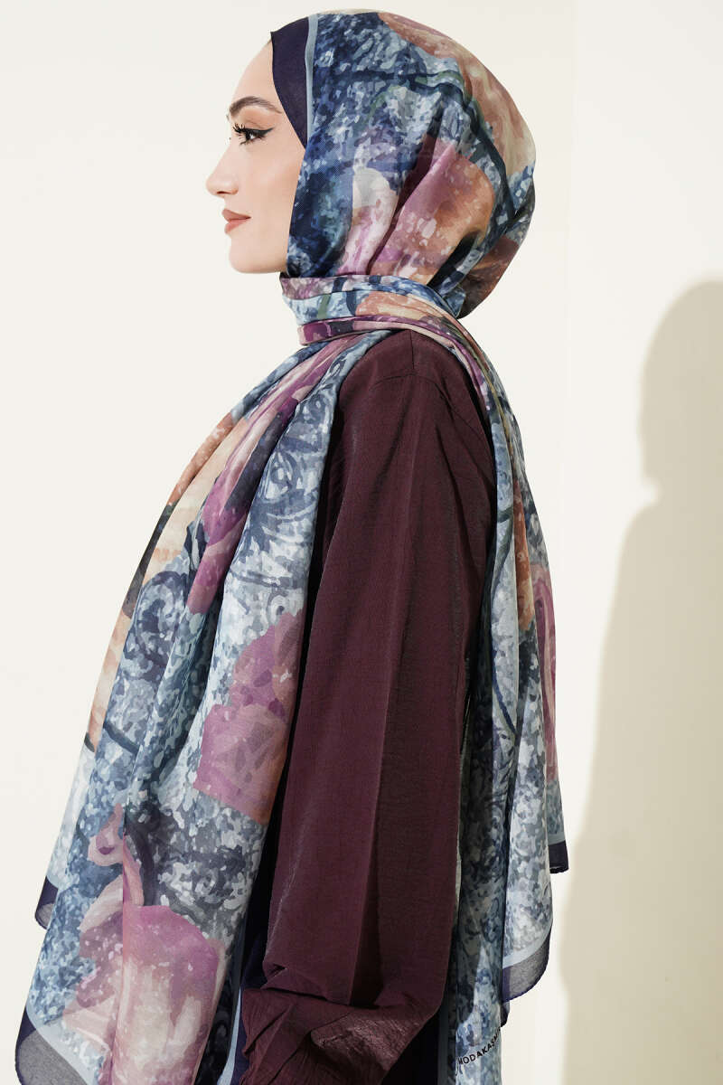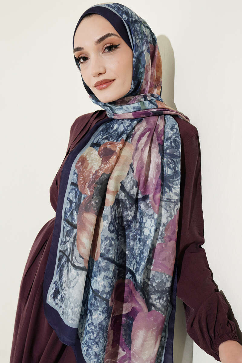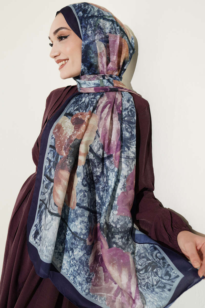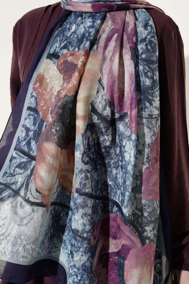 Lale Desen Bambu Kraş Eşarp Mürdüm