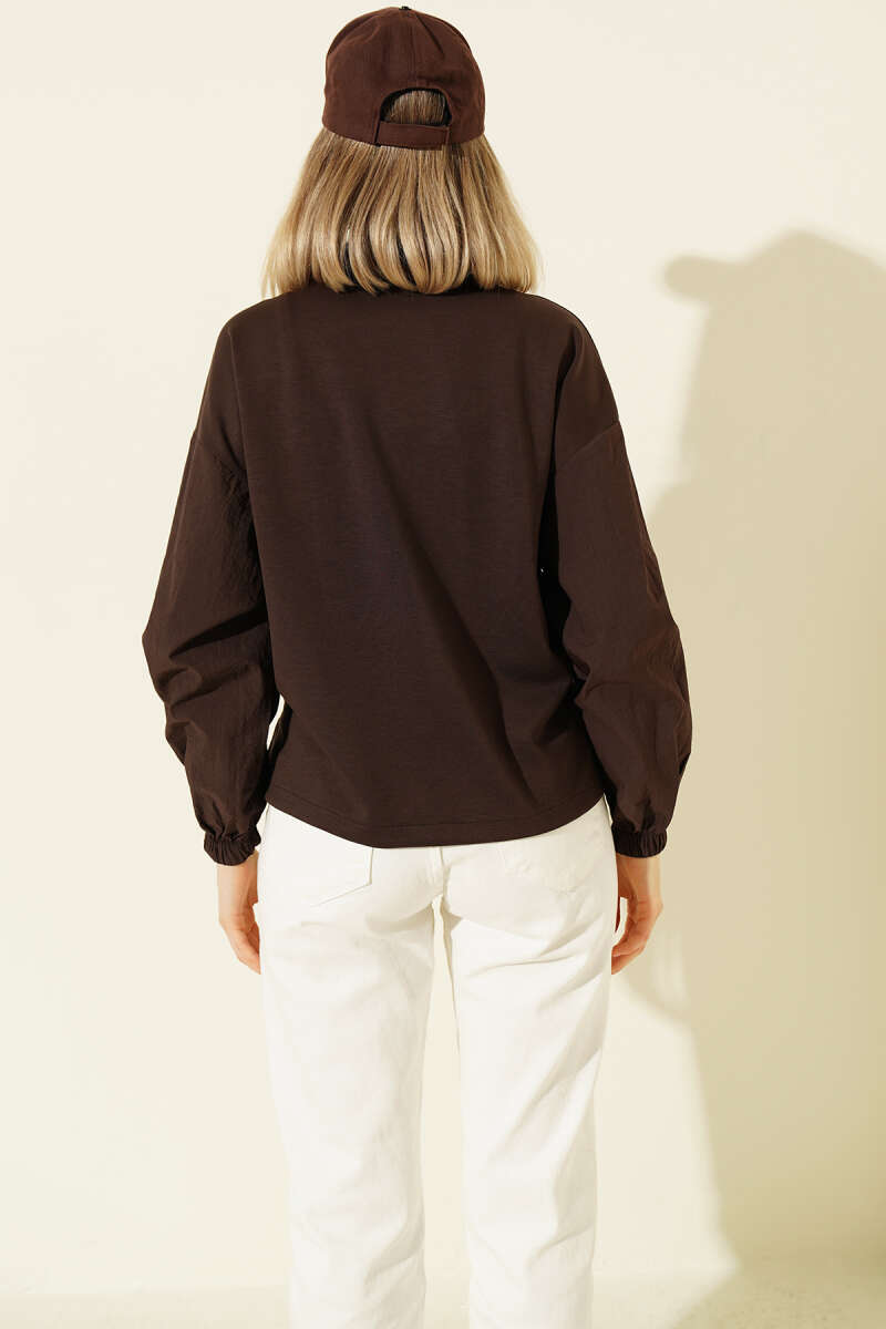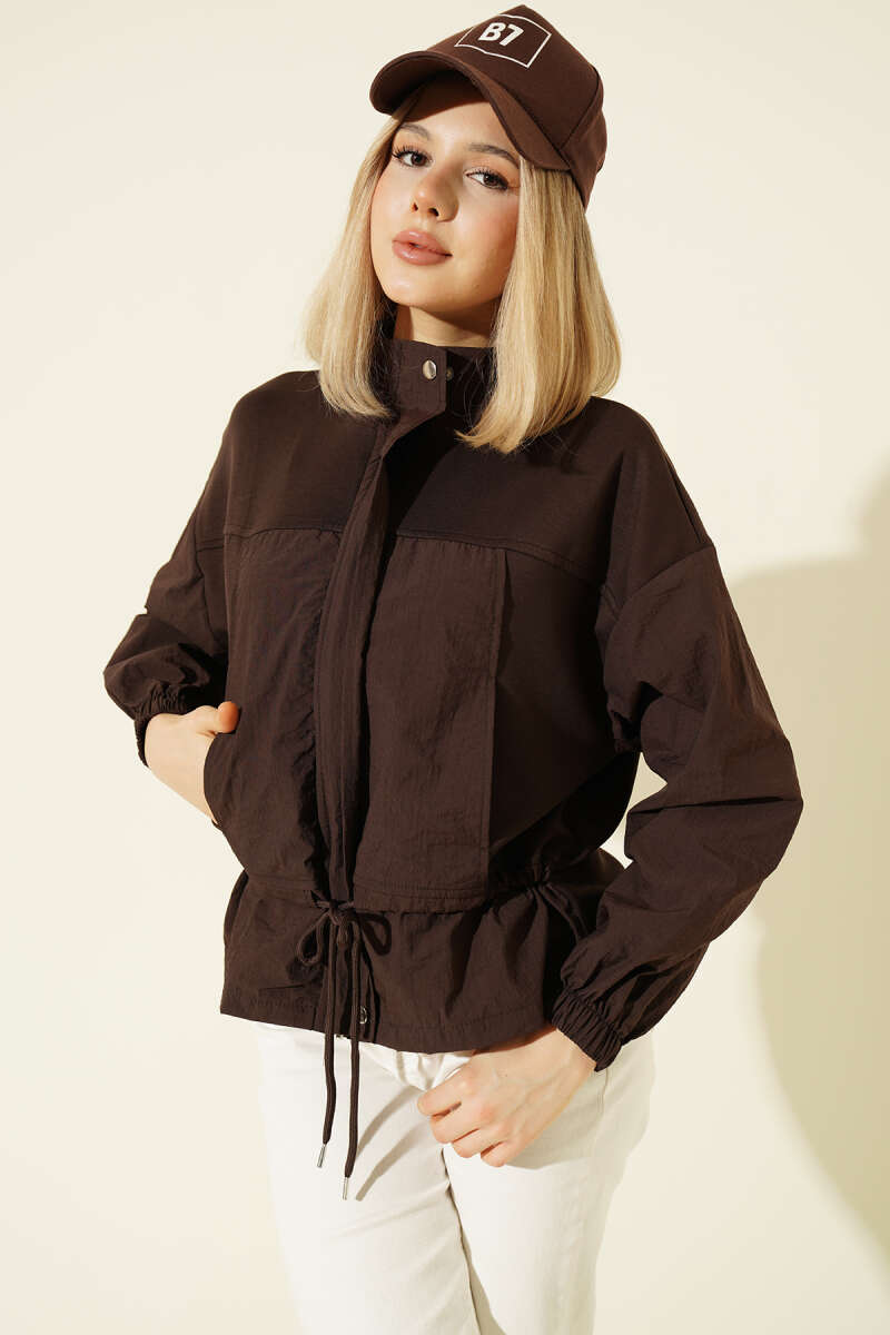 Fermuarlı Çift Cepli Kısa Ceket Kahve