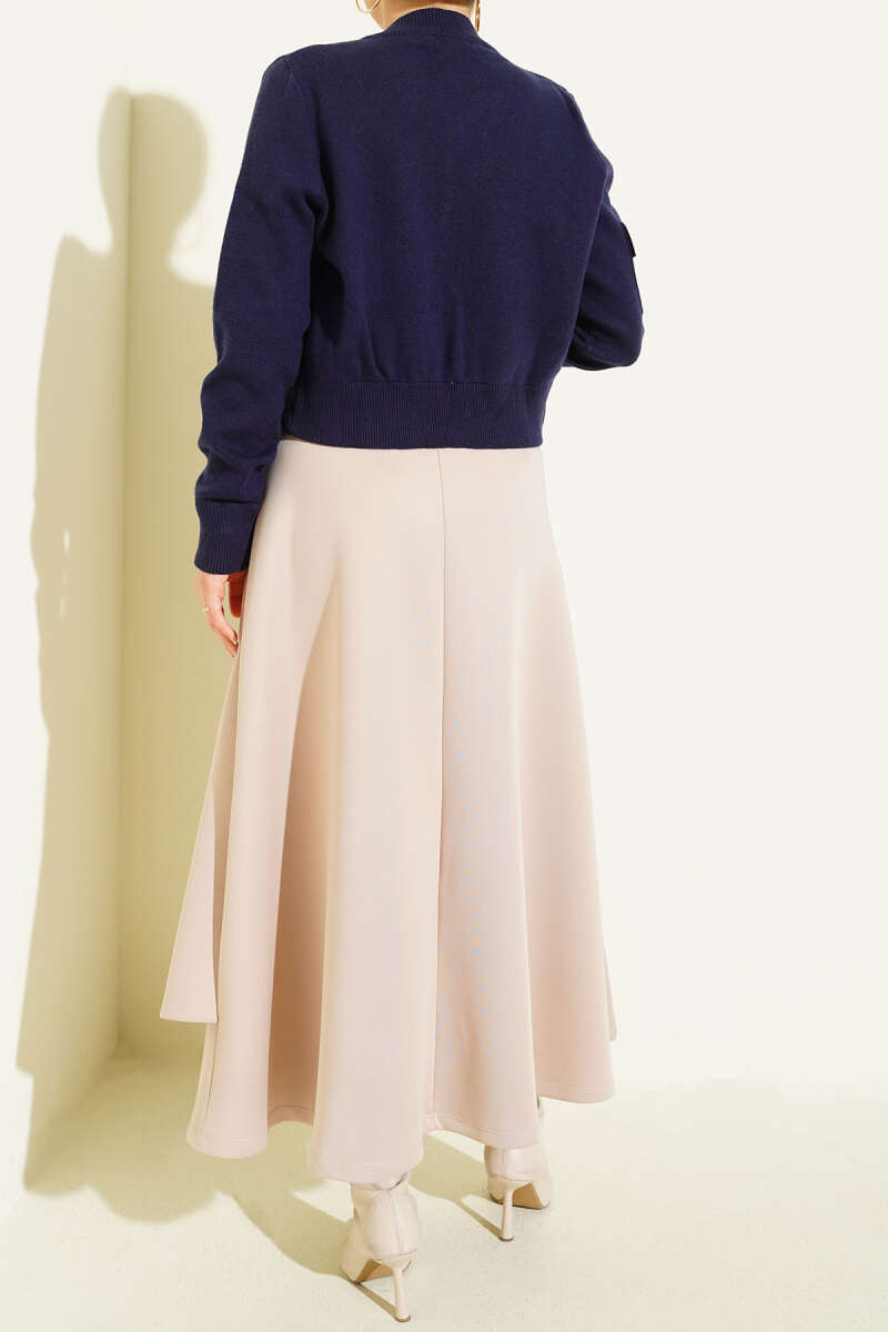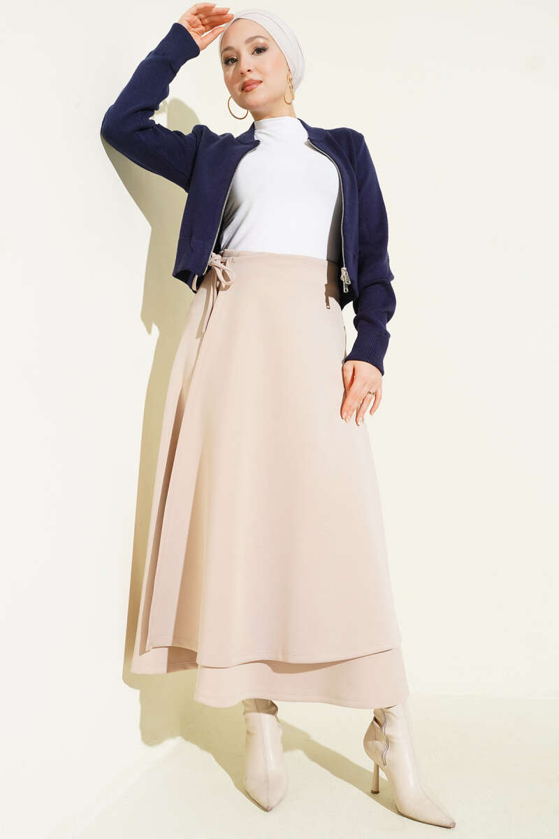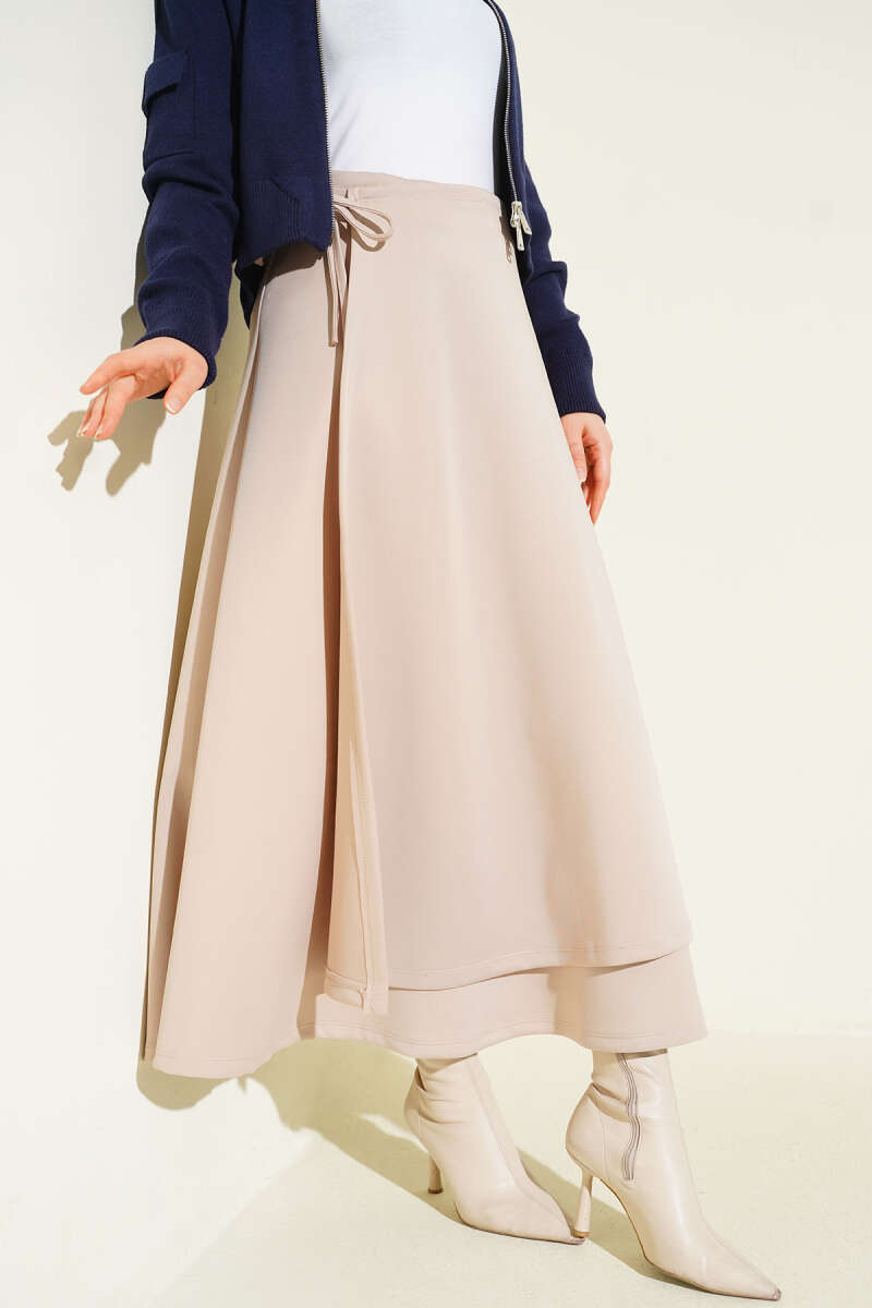 Parça Detaylı Bağlamalı Scuba Etek Bej