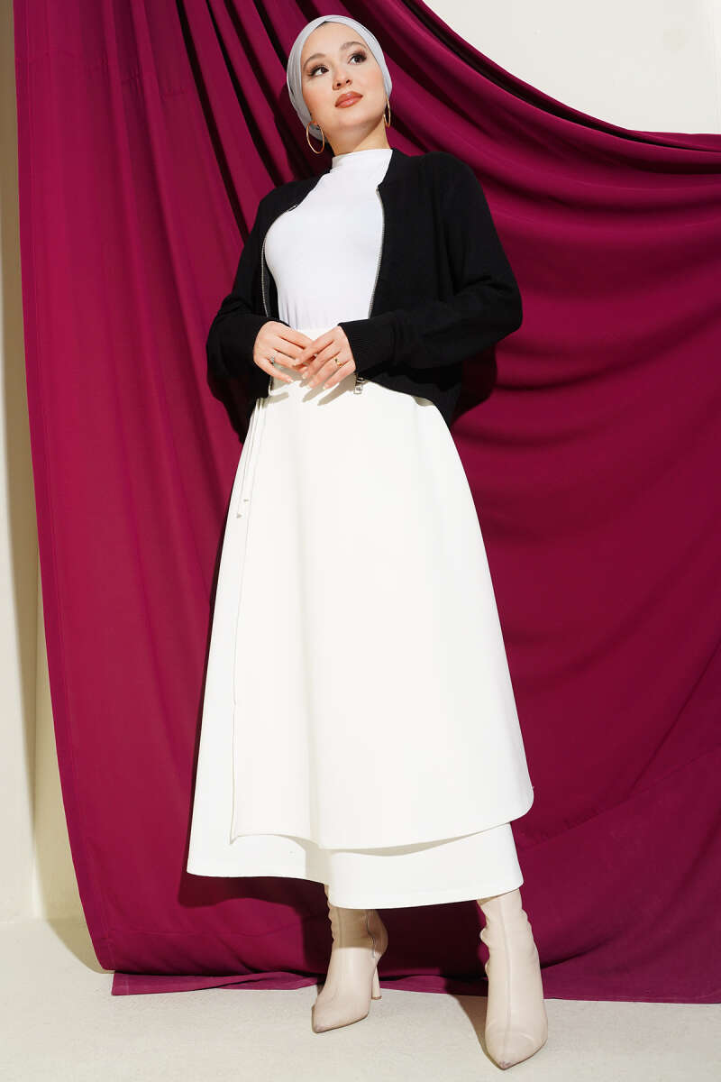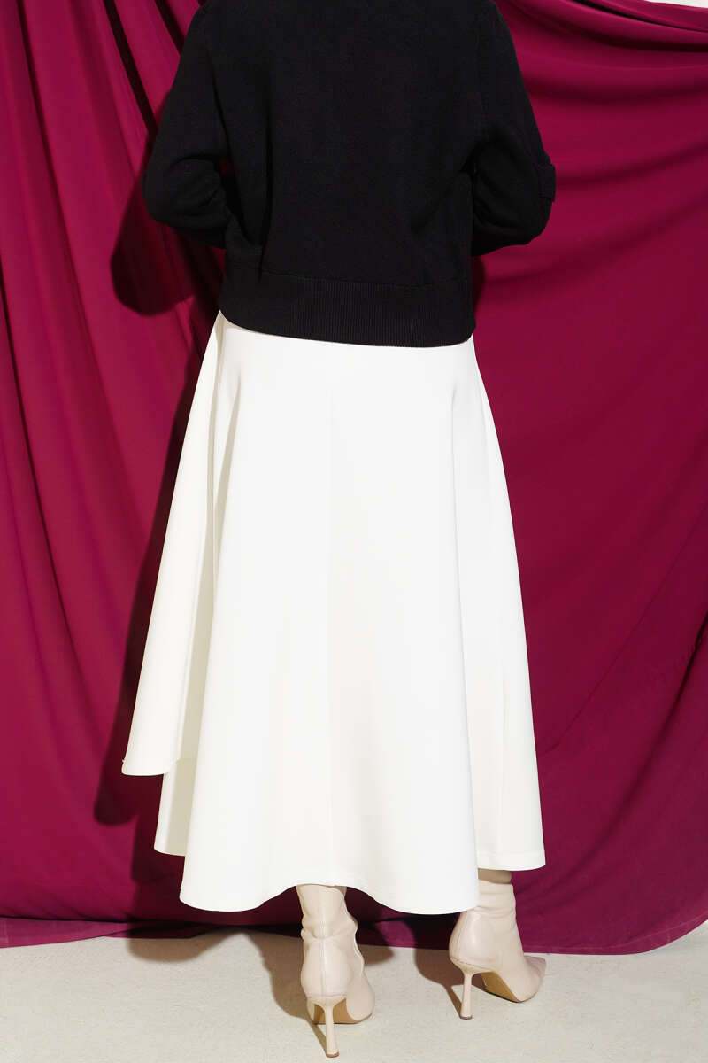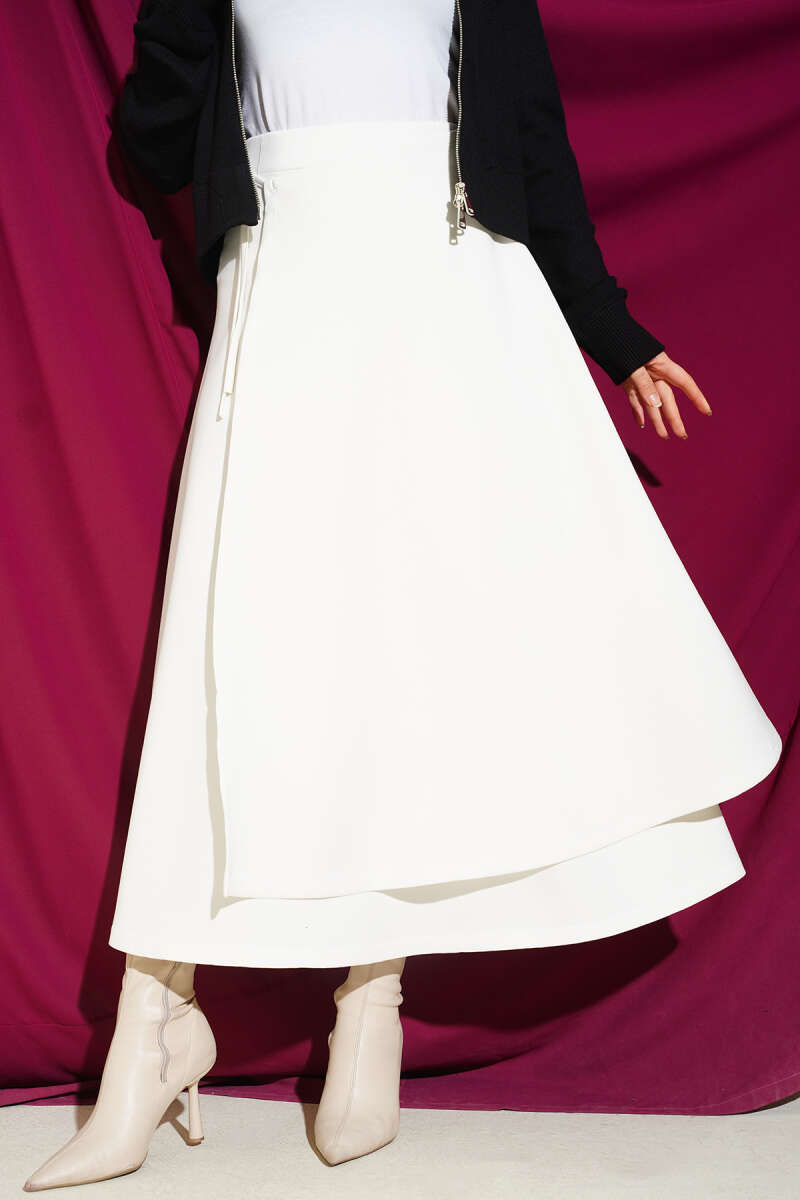 Parça Detaylı Bağlamalı Scuba Etek Ekru