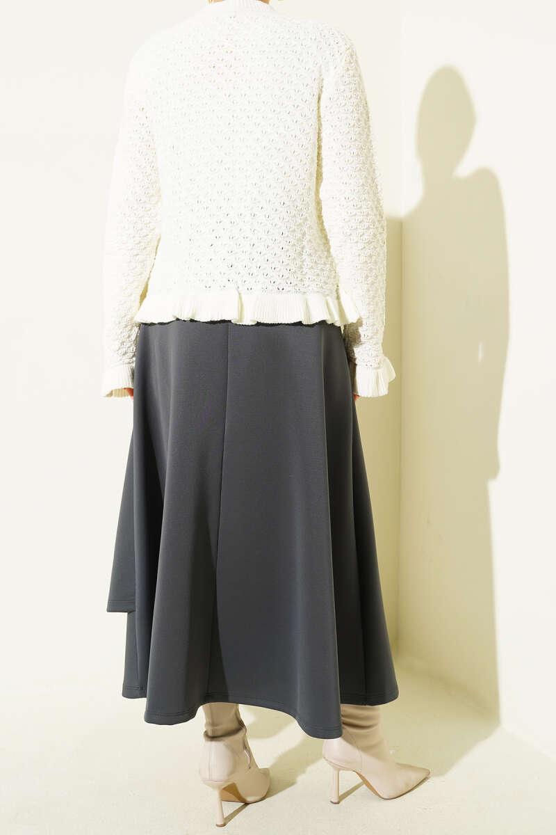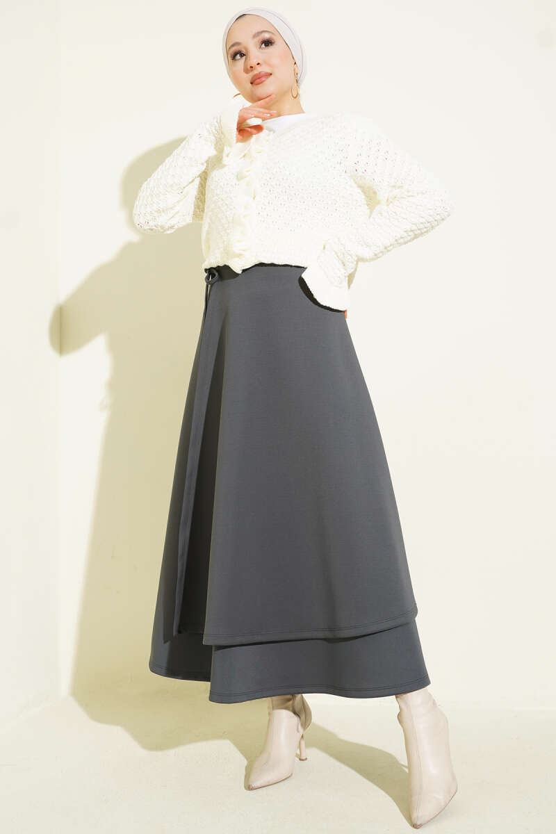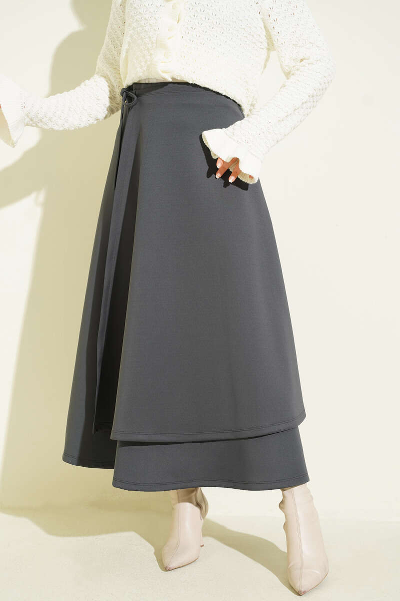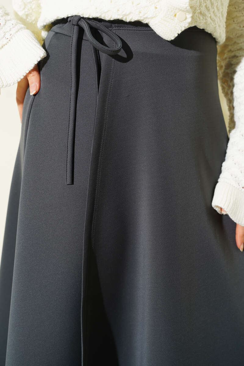 Parça Detaylı Bağlamalı Scuba Etek Füme