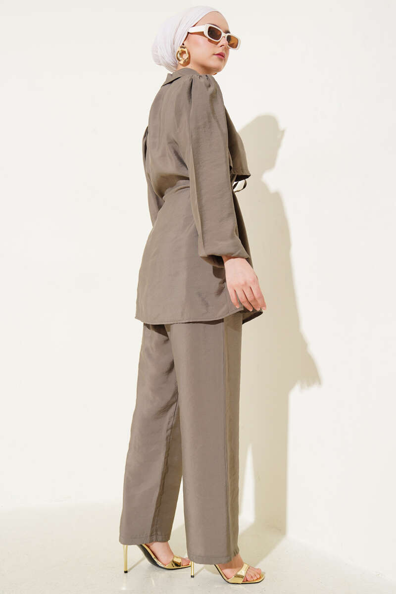 Dikiş Detaylı Basic Triko İkili Takım Vizon