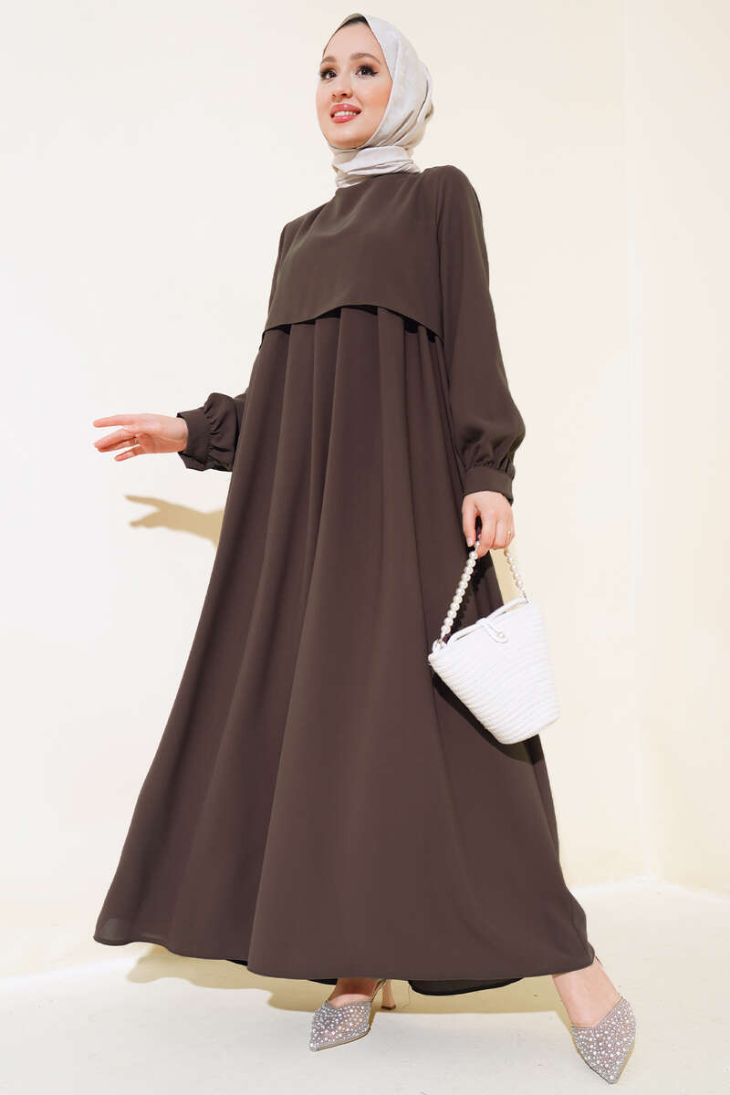 Yeni sezon elbise modelimiz sizlerle beraber. Elbisemiz önü ve arkası parça detaylıdır. Kol bilekleri manşetli ve düğmelidir. Önü pilelidir. Sırtı fermuarlıdır. Astarsızdır. Elbisemiz renk seçenekleriyle özel günleriniz için tasarlanmıştır.